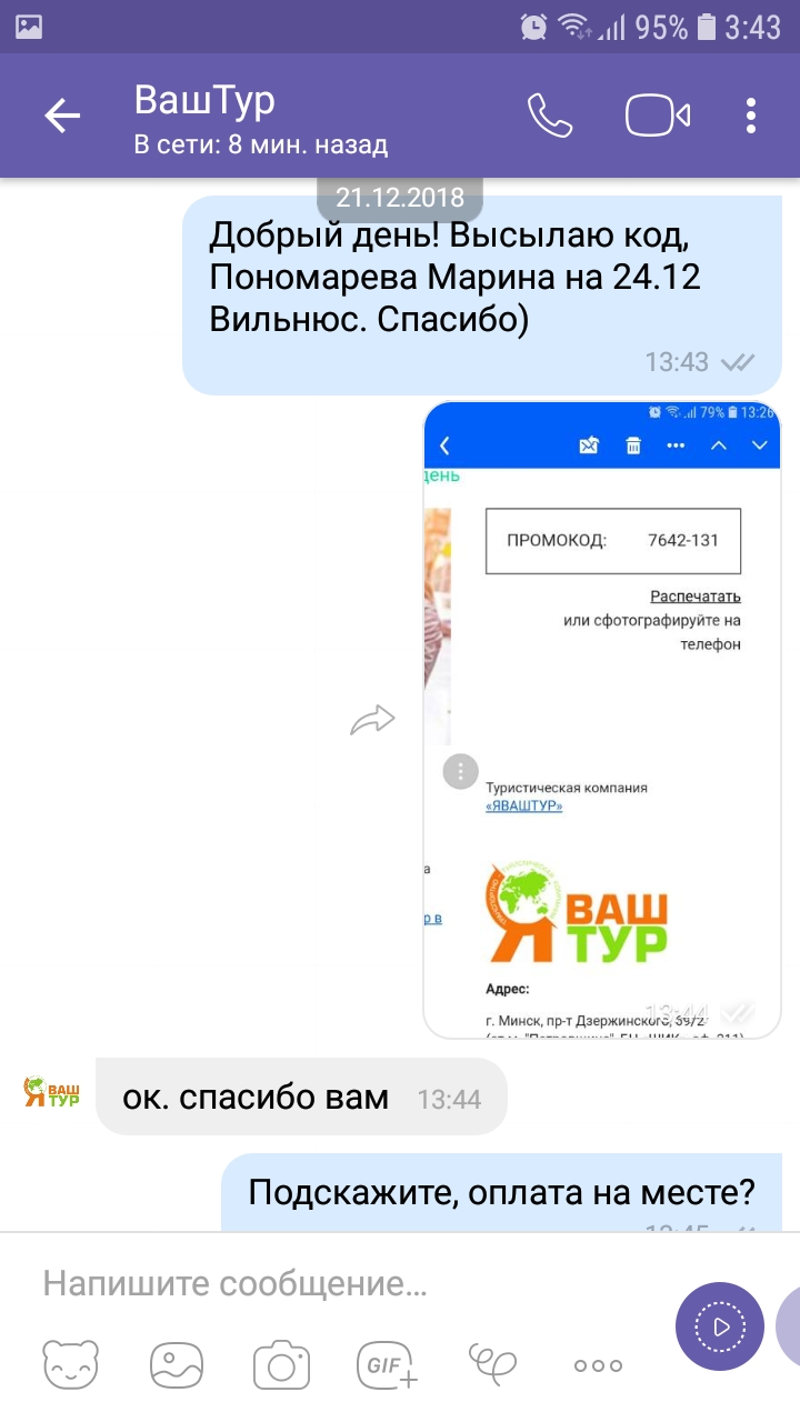 Здравствуйте Девушки,  не могу вам не ответить! Я ждала от вас  комментария! Давайте с самого начала, водитель Андрей уменьшил печку с первой же просьбы пассажиров и разговоров о кондиционере не было, не надо выдумывать! Дальше, мы приехали в Вильнюс раньше времени , на два часа, так как быстро прошли границу! Поэтому я и уточнила у вас информацию хотите ли вы поспать это время , или походить по магазину Максима, который открывался раньше всех! Вопрос тоже был решён сразу же и без всяких проблем! По поводу того, что мы вас не забрали с Акрополиса , все потому , что вы  просто напросто не пришли в нужное время на стоянку к автобусу ,опоздали! ( притом что мы выехали на 5 минут позже, в 17:05) Всех остальных туристов пришедших вовремя я забрала! И ответила я вам по телефону не повышая голоса , что автобус стоял на стоянке ближе к 4 выходу( странно что вы этого не помните)и чтоб вы ехали на такси до магазина IKEA, так как предупреждала, что опаздывающих ждать никто не будет! Но все равно ждала возле IKEA вас до последнего, и вопиющее враньё говорить о том , что мы тронулись , а вы сигналили и догоняли нас! Как вам не стыдно? Автобус стоял на месте и все терпеливо ждали вас! И уезжать без ВАС никто не собирался! И вместо того чтоб извиниться и поблагодарить за ожидание вы молча зашли, уселись и благополучно прибыли в Минск, и выйдя не убрав даже за собой выпитую бутылку от алкоголя!