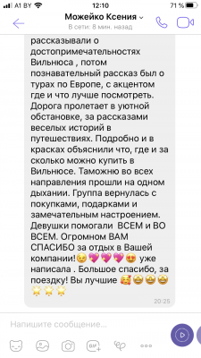 - Руководитель который сопровождает Вас в поездке, дает туристам подробную информацию по торговым объектам и пребывании в Вильнюсе.