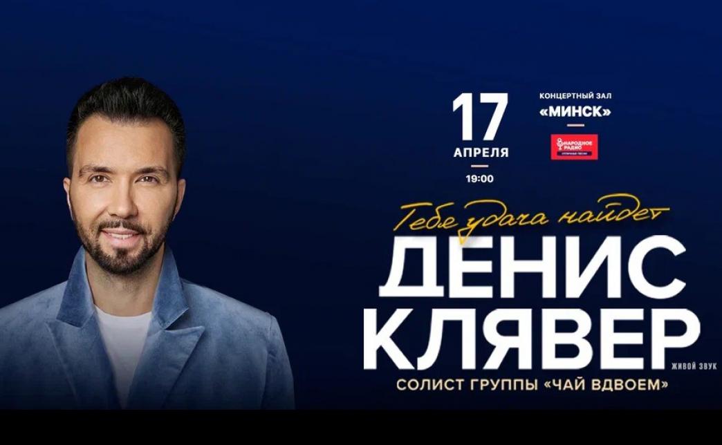 - Шоу Дениса Клявера "Тебя удача найдет" состоится 17 апреля в 19:00 в концертном зале "Минск" по адресу ул. Октябрьская, д. 5