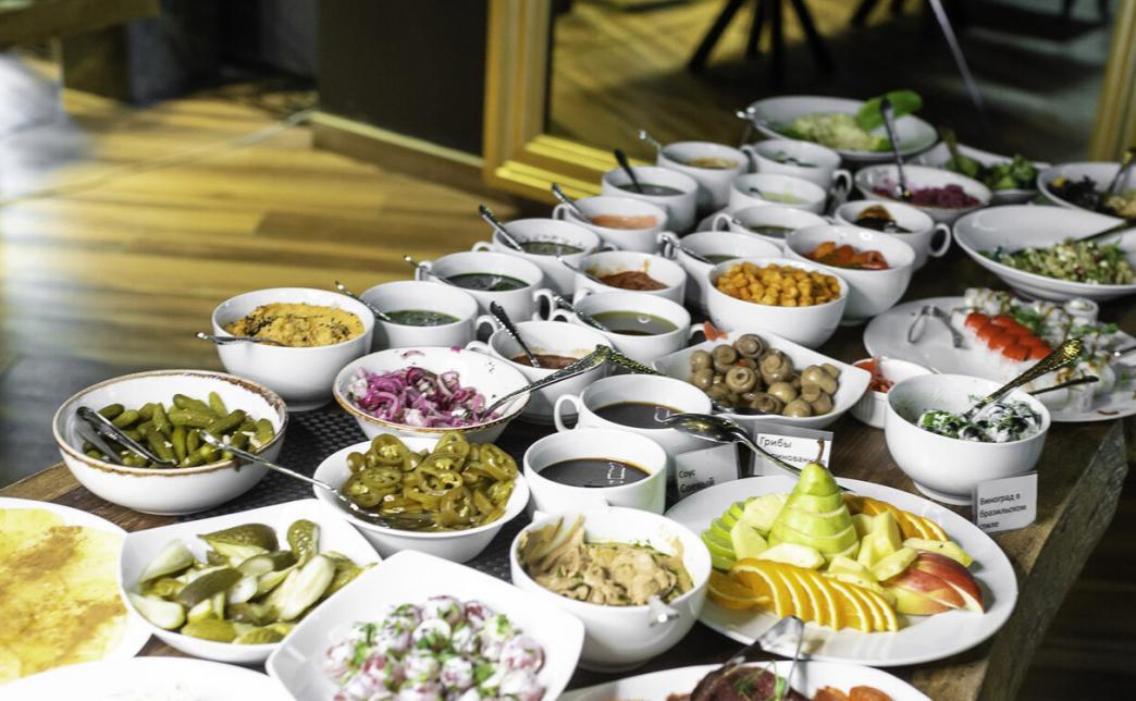 Гриль-меню бранча в будни состоит из 7 блюд и салат-бар из 6 видов блюд. В воскресенье меню незначительно расширяется: + 4 блюда в список к грилю.