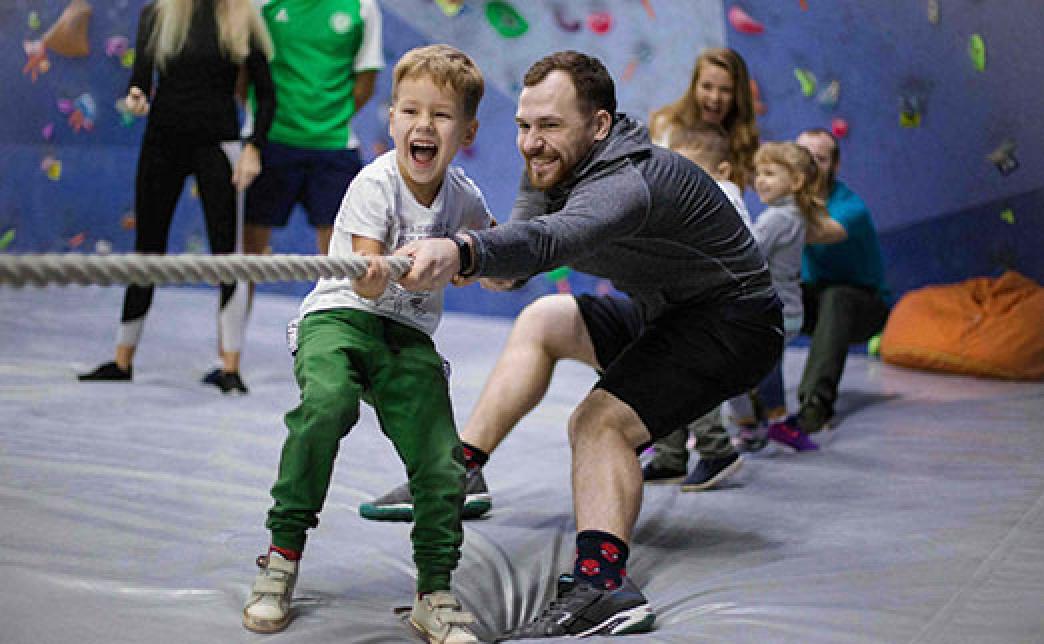 Семейный "Старт-пакет", обучающее занятие включает в себя всё необходимое снаряжение (страховочная система, скальные туфли, мешочек с магнезией), инструктаж, разминку, 9 подъёмов на высоком скалодроме на двух взрослых и одного ребенка старше 5 лет , лазание в зале боулдеринга без ограничения по времени (высота болдерингового зала 4.2 метра, пол уложен мягкими страховочными матами);