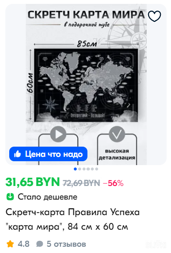 Полезный подарок для любительниц отдыха заграницей. Можно найти разные варианты: со стирающимся слоем, деревянные с кнопками, иные пометки на холсте. Мы нашли черно-белый вариант с серебряным слоем и цветная карта с золотистым напылением!