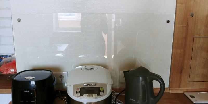 Заказывала небольшое скинали на кухню из прозрачного стекла.