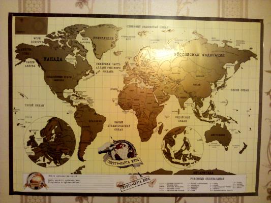 - посещенные страны "стираются" (монеткой стирается защитный слой) постепенно карта "раскрашивается"