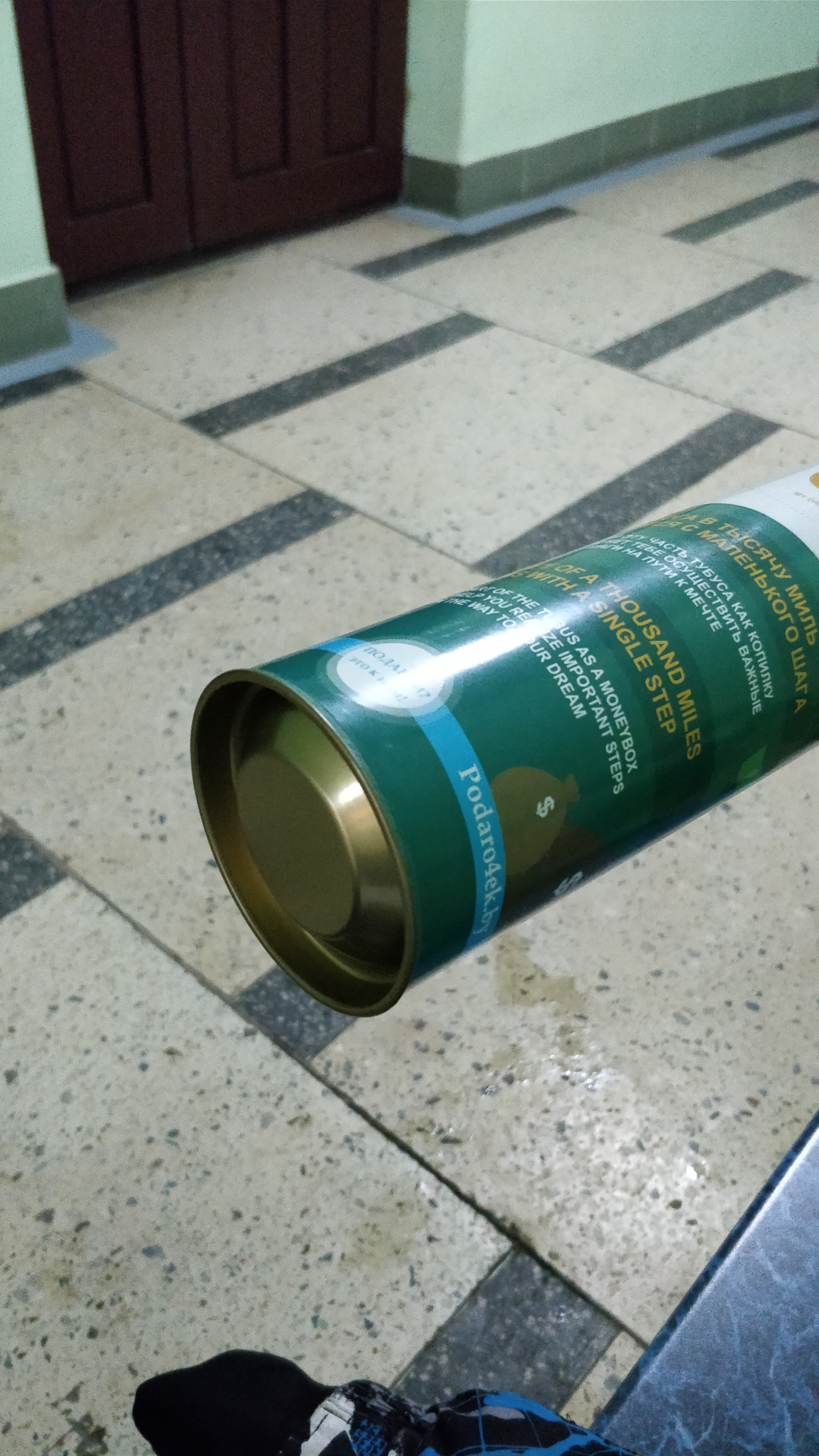 - подарочный яркий тубус, который трансформируется в копилку специально для одного из заданий