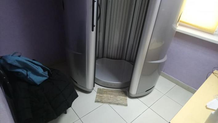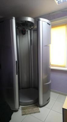 Солярий вертикальный, с обдувом. Предлагают бумажные салфетки, молочко для снятия макияжа, ватные диски. Шапочку и крем у меня были свои. Все аккуратно, чисто.