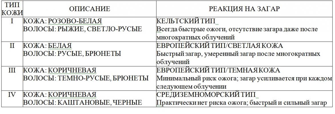 Спасибо за отзыв! Так же предлагаю вниманию всех таблицу типов кожи и ее реакции на загар. Спасибо, что выбираете нас!