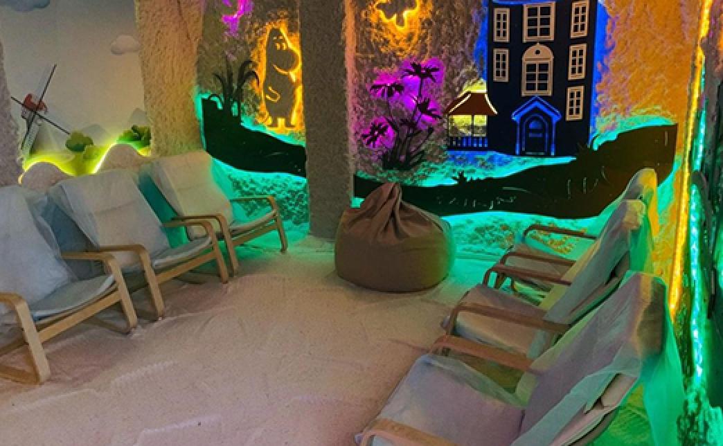 Соляная пещера - специально оборудованное помещение с удобными релаксационными креслами. На стены и пол нанесено специальное толстое солевое покрытие, а воздух насыщен аэрозолем хлорида натрия (соли).