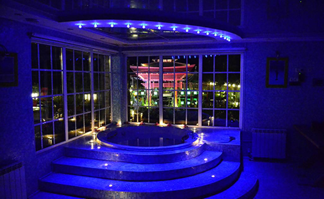 - это турецкая парная «Хамам» (до 55 градусов при 100% влажности) с подогревом лежаков и сидений, с светотехническими элементами хромотерапии, звездного неба и звуковой акустической системы,