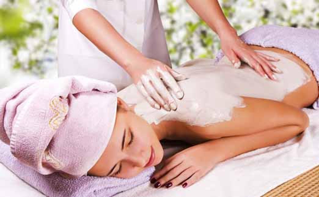 - очищение кожи с помощью скраба, содержащего водоросли, морскую соль, имбирь, кориандр, базилик, а масло оливы или виноградной косточки служит замечательным питанием кожи, оказывает смягчающее действие, увлажняет ее. Так же со скрабированием проводится дренаж всего организма, что помогает усилить обменные процессы, очистить кожу.