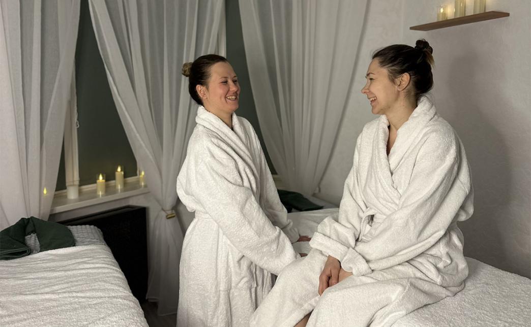 - уходовая процедура для лица "Глубокое увлажнение" (демакияж, энзимное очищение, тонизация, нанесения маски с учетом типа и состояния кожи, нанесения финишного крема по типу кожи), выполняется во время обертывания
