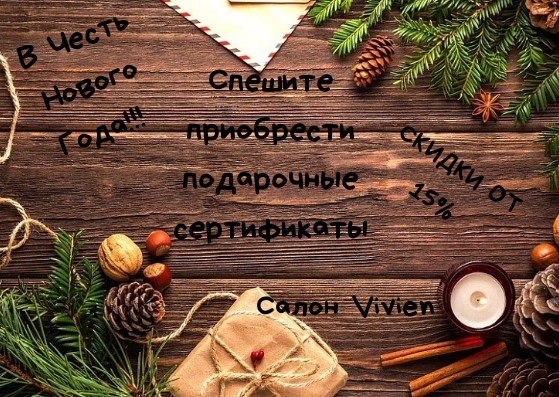 - Промокод дает право на скидку до 33% на покупку подарочных сертификатов на Spa-уходы за телом, Spa-комплексы, на комплексы для ручек и ножек в салоне красоты "Vivien"