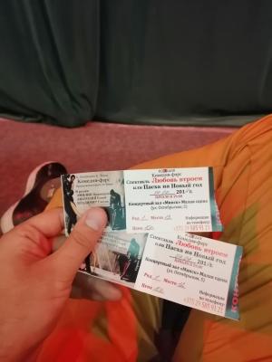 - Промокод дает право на скидку 50% на комиссионный сбор и 50% на приобретение билета на спектакль "Любовь втроем или Пасха на Новый год"