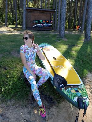 - выдается полный комплект: доска, карбоновое весло, лишь (страховочный шнурок), киль (плавник), спасательный жилет, насос