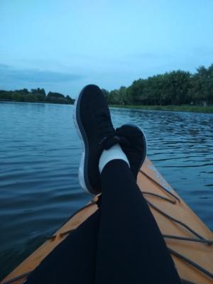 - Спортивная одежда из синтетики и сменная одежду, на ноги может попадать вода с весла