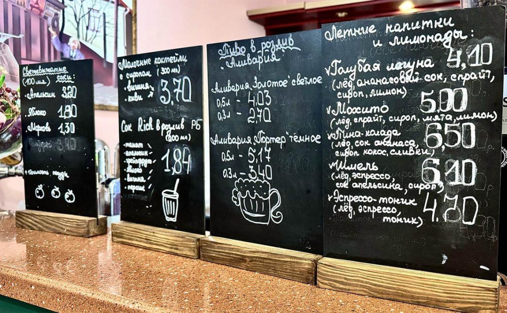 Помимо этого, Вы можете посетить бар, расположенный на 4 этаже универмага. Ежедневно в меню бара включены 32-34 наименования кулинарной продукции и 8-10 наименований булочных и мучных кондитерских изделий, соки, напитки, кофе, чай.