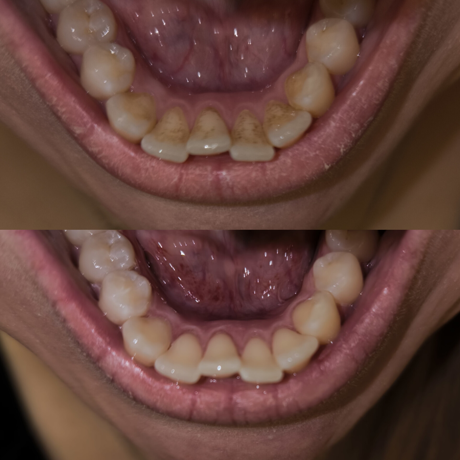 - Комплекс включает: ультразвук + чистка AirFlow + полировка щетками и пастой + покрытие фторлаком + консультация