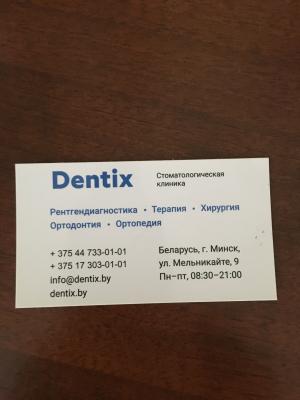 Главная задача клиники – оказать необходимую помощь любого уровня сложности. Стоматологическая клиника "Dentix" находится в центре города Минска по улице Мельникайте 9, в трех минутах ходьбы от станции метро "Фрунзенская". Наша клиника оказывает пациентам полный спектр стоматологических услуг любой сложности. Клиника оснащена современным оборудованием для диагностики и лечения. Наши специалисты имеют первую и высшую категории, постоянно совершенствуются, что подтверждается сертификатами.