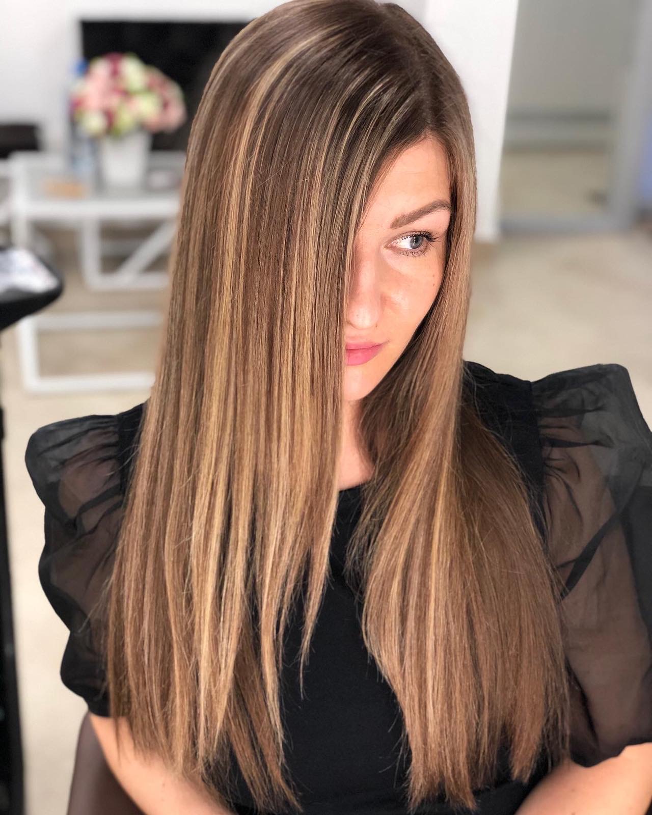 Техника окрашивания Airtouch (выполняется с помощью фена, выдувая так волос, что создается эффект натуральности и при этом без ярко выраженных прядей, как в калифорнийском мелировании)