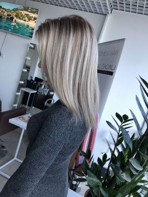 Шикарный стилист-шикарный результат. Плавный переход от темных корней к блонду без желтизны, это то, к чему я шла давно. Случайно нашла и ничуть не пожалела. Безусловно вернусь к Аннушке. Огромная благодарность! Золотые руки!
