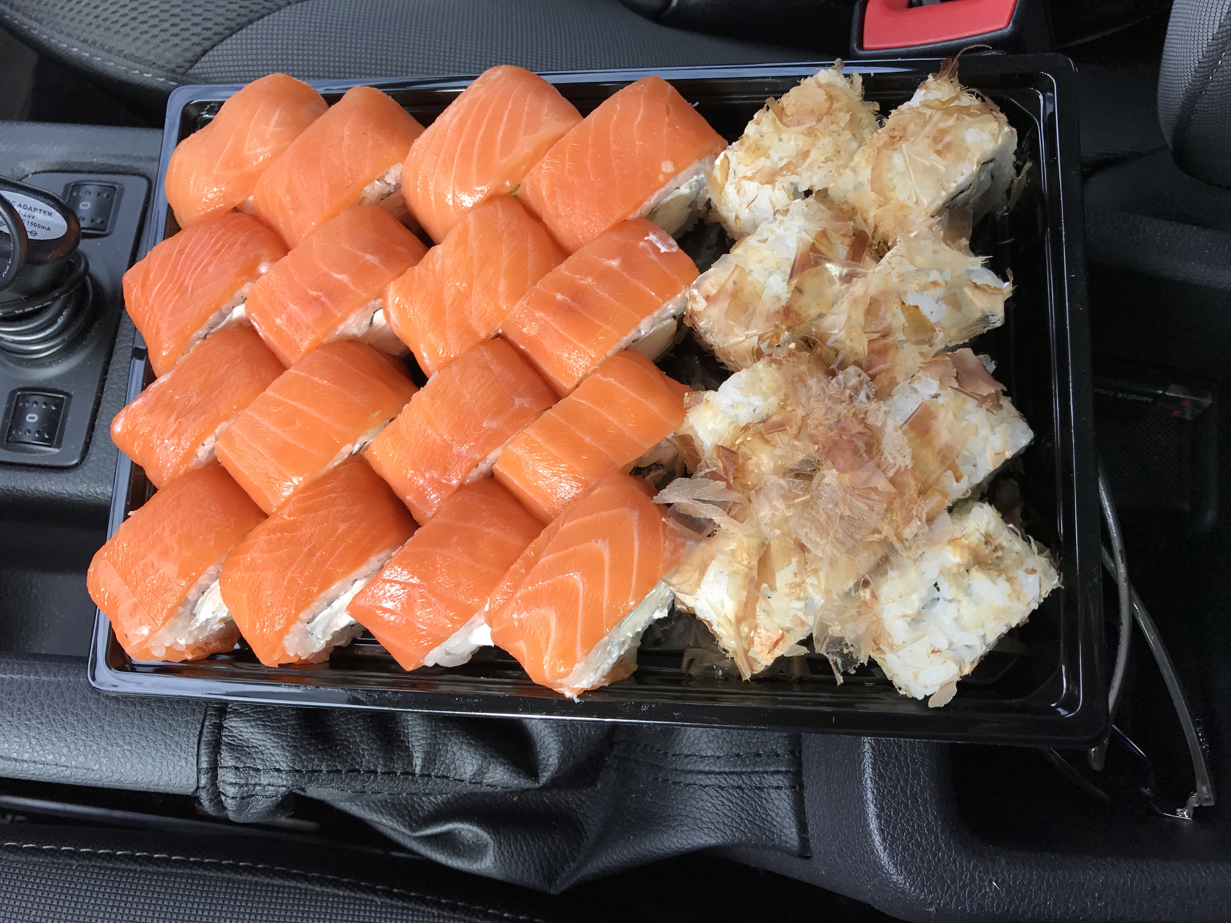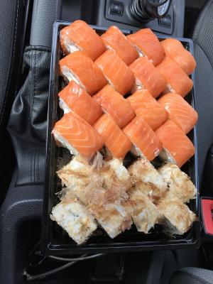 Заказывали суши с самовывозом, заказ был готов во время. Ко вкусу никаких претензий - суши очень вкусные. Но, почему-то, очень плохо держали форму и разваливались (мы заказывали все без нори сверху). Может, из-за огромных размеров? Заказывать будем еще - это точно, но пусть ребята поработают над исполнением).