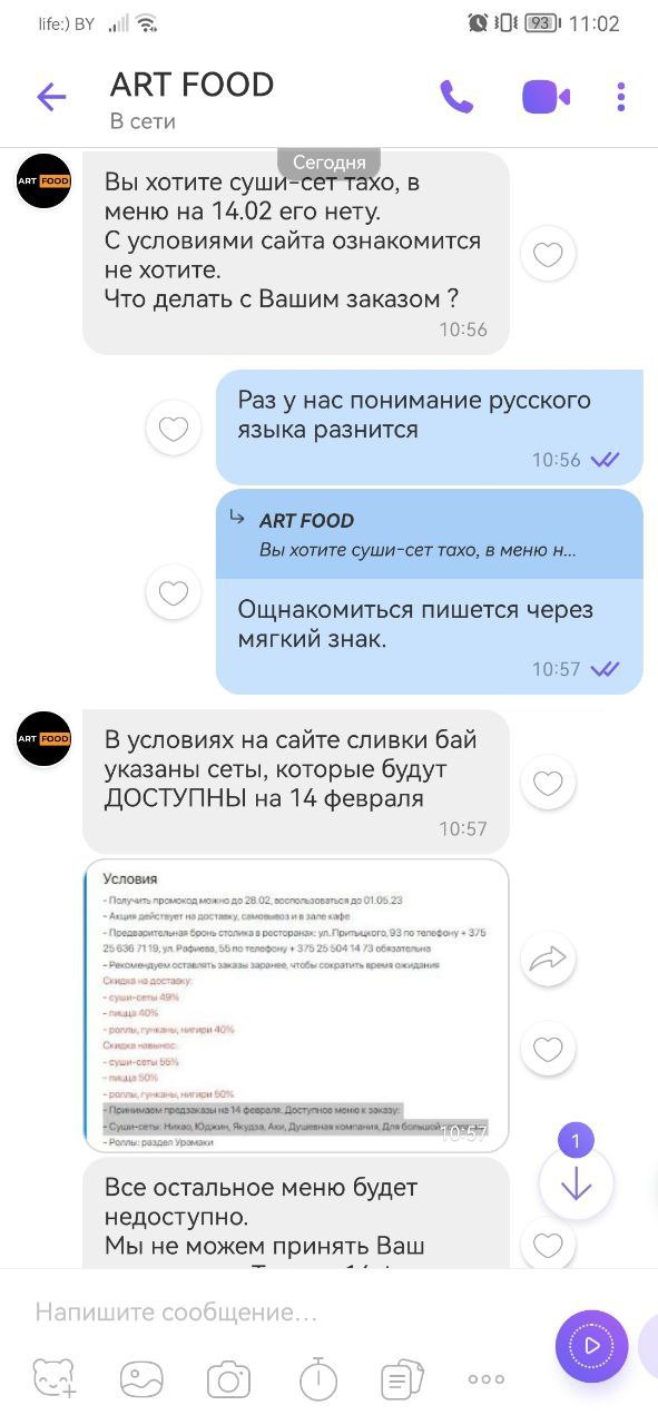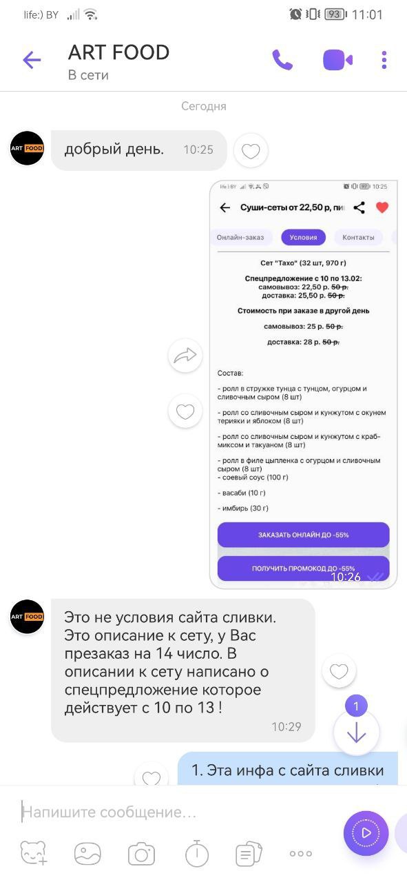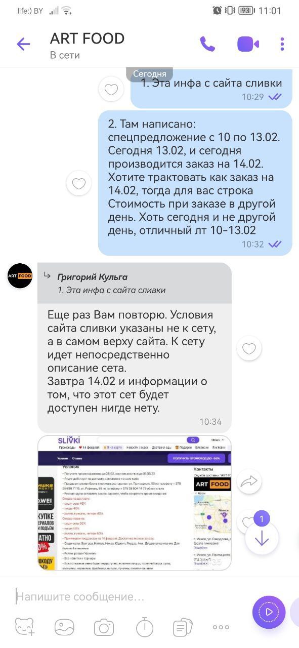 - Оформляя заказ через Slivki.by, пользователь автоматически принимает договор оферты и условия обработки персональных данных, службы доставки "ART FOOD"