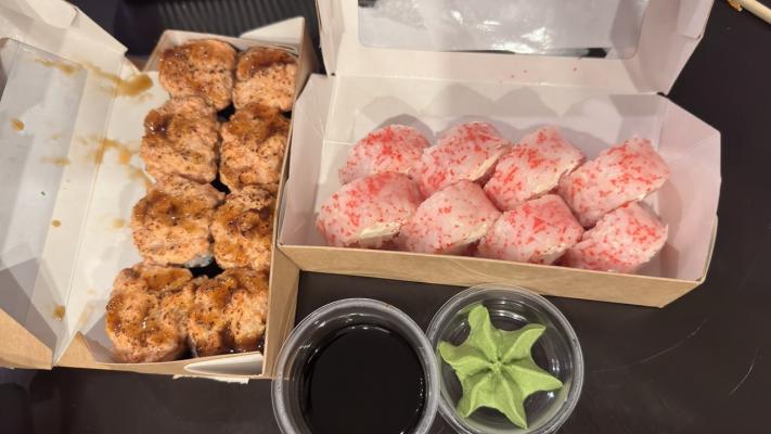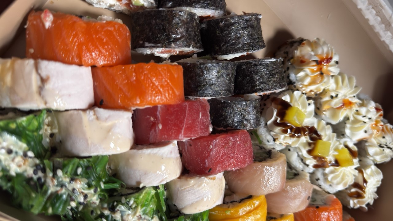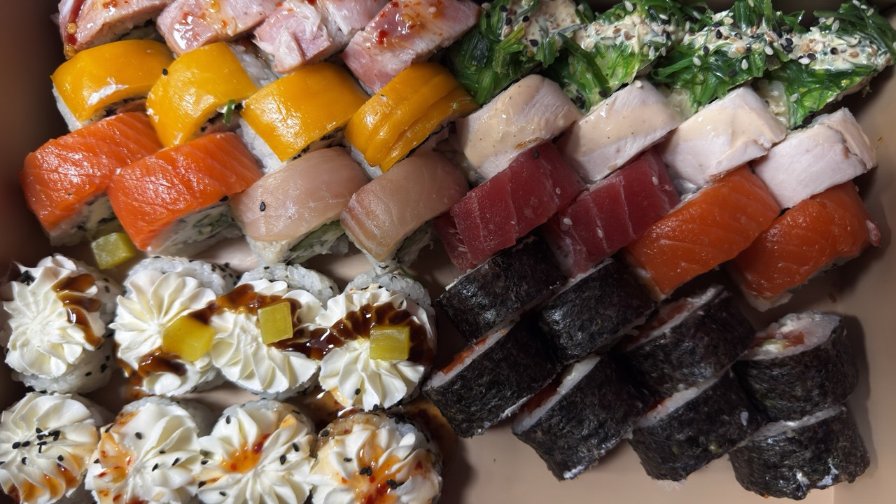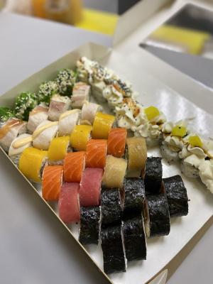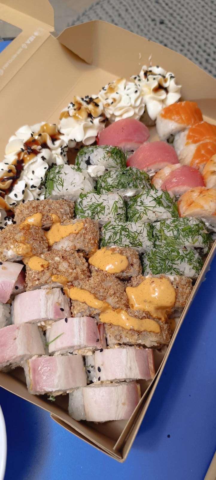- Открыт предзаказ на 14 февраля! Доступные сеты: "Флирт", "Мамины радости", "Ясахи", "Филадельфия", "Каприз", "Можно всё!", "Палитра вкуса", "Муж купил", "Биг босс", "Мафия", "Манга", "Юджин". Роллы: урумаки.