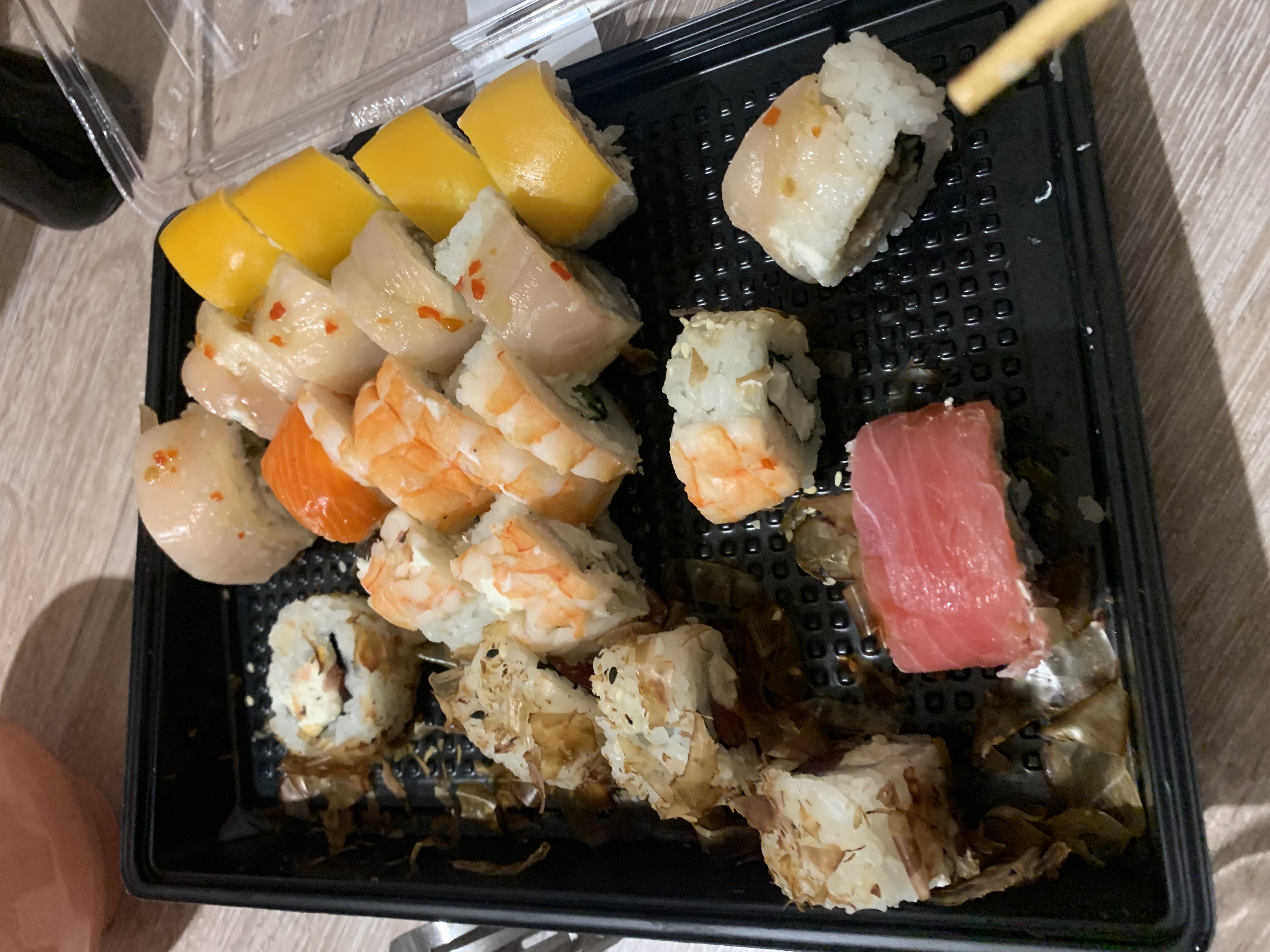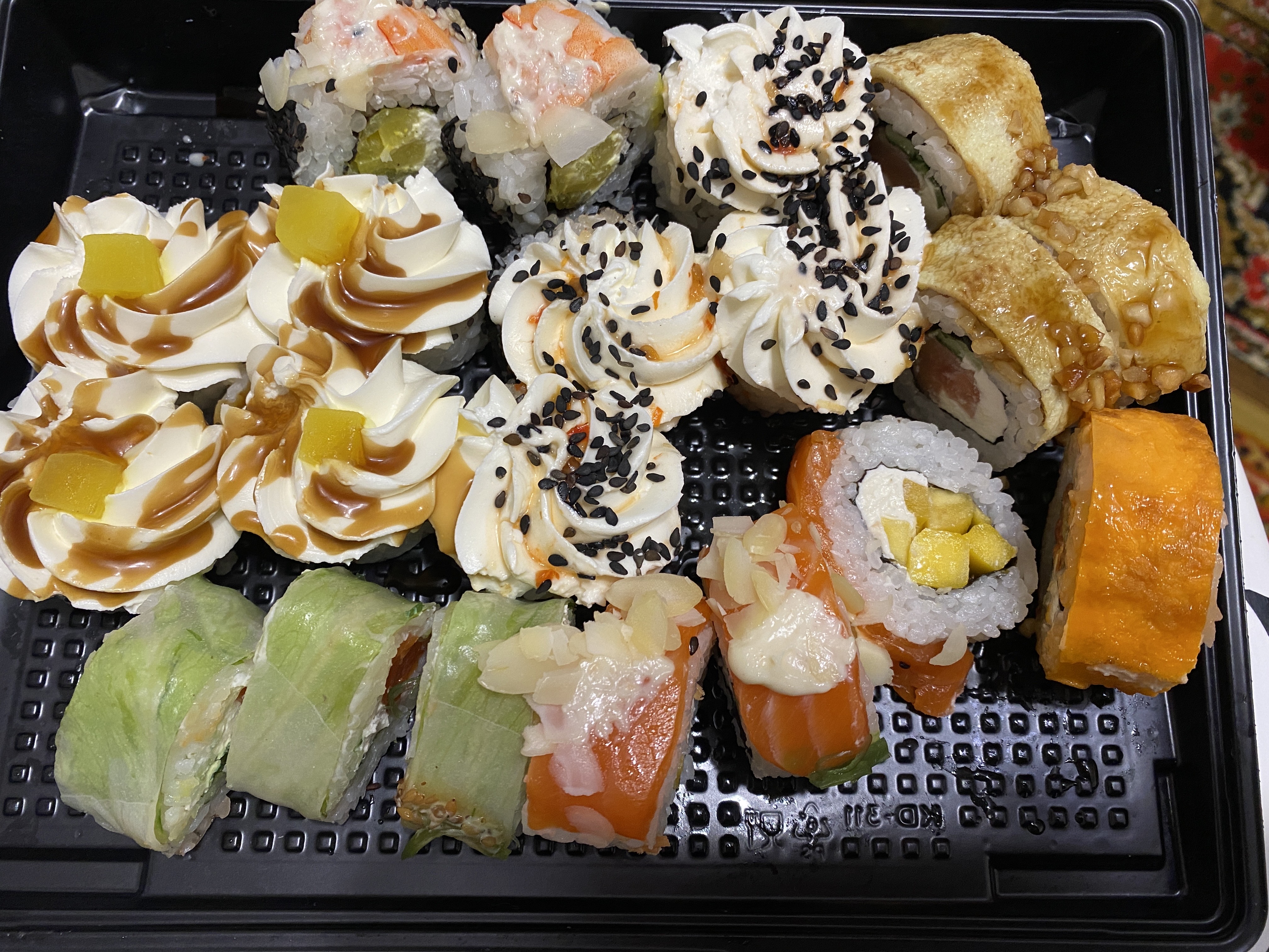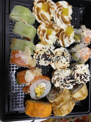 - Внимание! К предзаказу на 31.12 доступны: сет "Новогодний", "Дымный", "Мамины радости", "Макеба", "Ясахи", "Филадельфия", "Каприз", "Игра в кальмара", "Можно всё!", "Мама босс", "Палитра вкуса", "Муж купил", "Биг босс", "Мафия", "Манга", роллы Урамаки, все напитки и гарниры