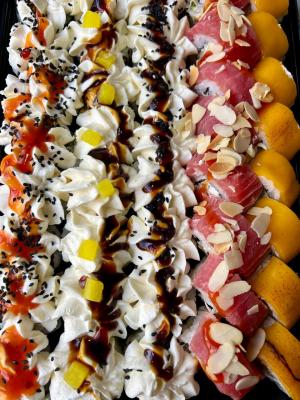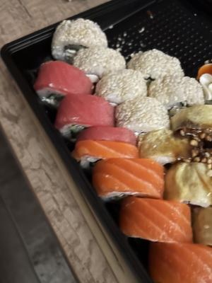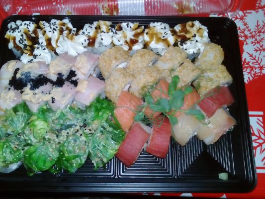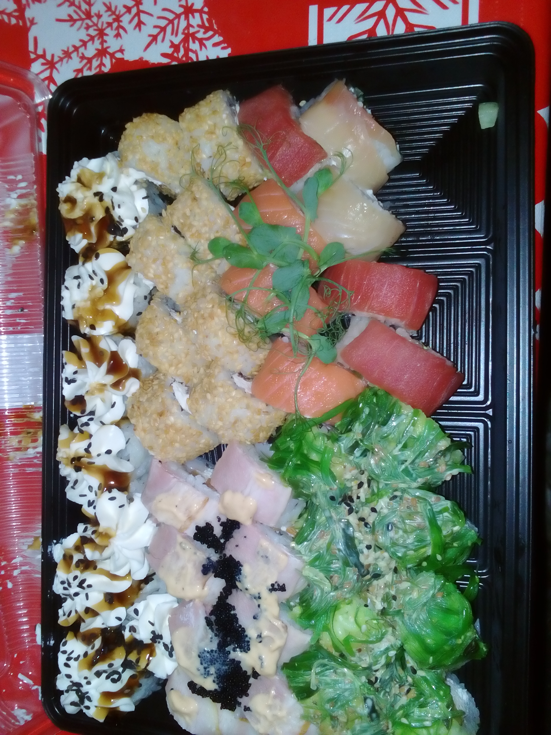 - Внимание! К предзаказу на 31.12 доступны: сет "Новогодний", "Дымный", "Мамины радости", "Макеба", "Ясахи", "Филадельфия", "Каприз", "Игра в кальмара", "Можно всё!", "Мама босс", "Палитра вкуса", "Муж купил", "Биг босс", "Мафия", "Манга", роллы Урамаки, все напитки и гарниры