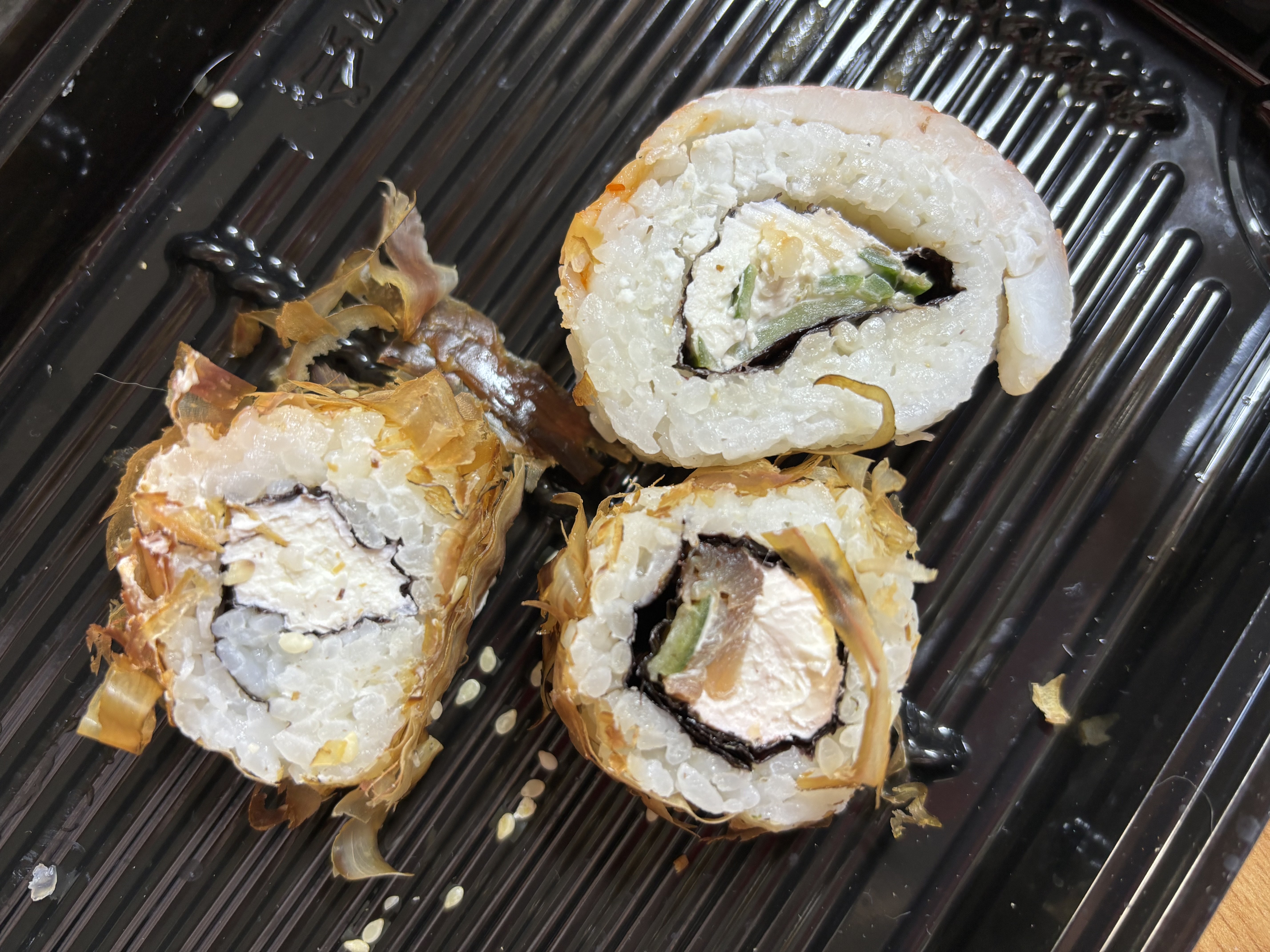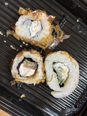 суши не оправдали ожиданий, рис сухой, разваливаются, в общем грустненько