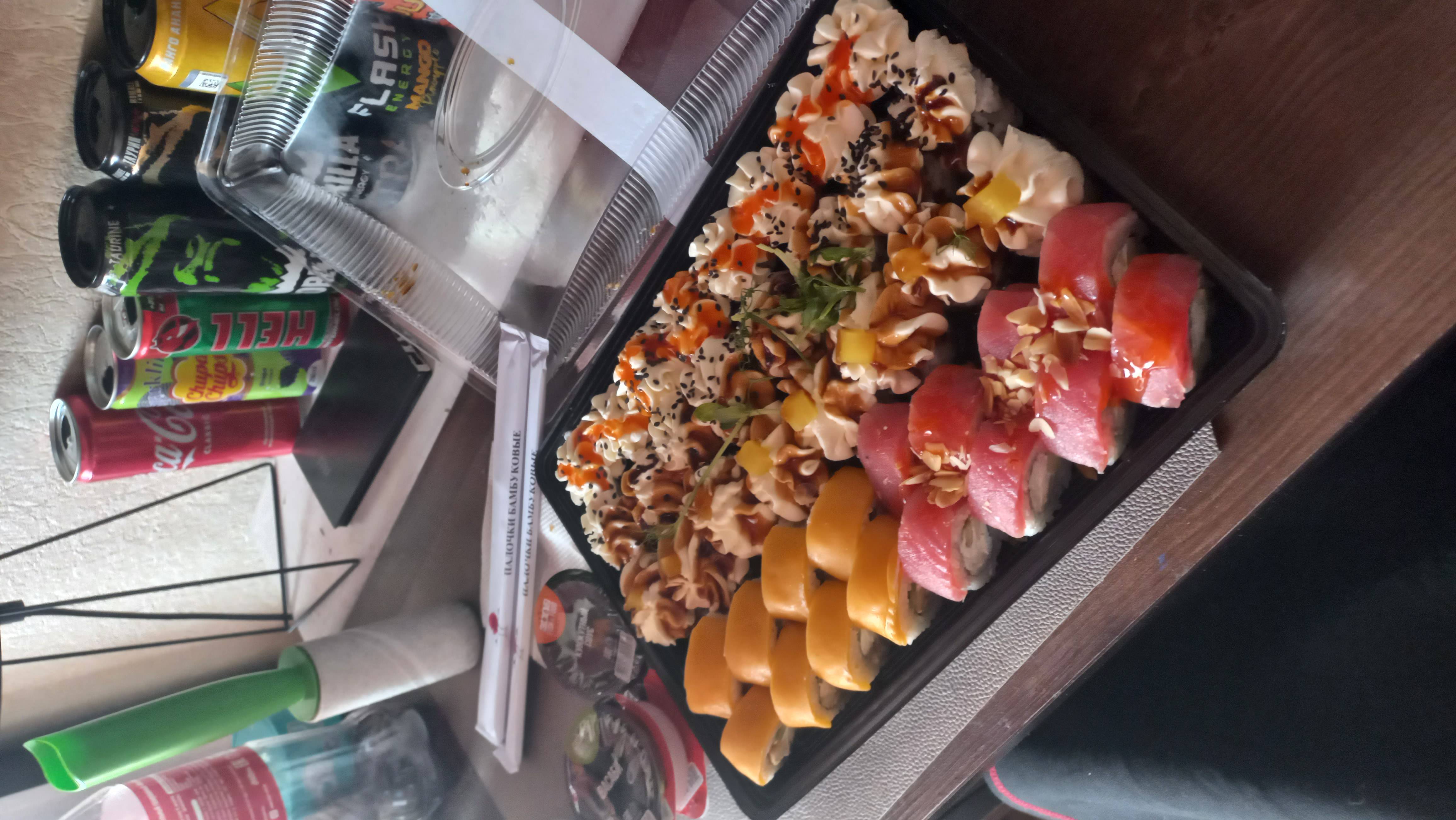 - Внимание! К предзаказу на 31.12 доступны: сет "Новогодний", "Дымный", "Мамины радости", "Макеба", "Ясахи", "Филадельфия", "Каприз", "Игра в кальмара", "Можно всё!", "Мама босс", "Палитра вкуса", "Муж купил", "Биг босс", "Мафия", "Манга", роллы Урамаки, все напитки и гарниры
