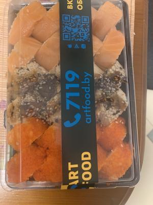 Если бы не 8 марта, вернулись бы эти три сета с Дзержинского,15 обратно на Притыцкого,93. Пришлось взять за указанную в чеке сумму, чтобы не портить дамам праздник. Но!!! Арт Фуд, все же его испортил. Суши, причем уже не в первый раз оказались лежалыми: рис был обветренным и жестким. Определенно, суши были приготовлены заранее, может в обед, а может даже с прошлого вечера. Как итог, 80% с каждого сета остались недоеденными. Это не суши!!!! Прощай Арт Фуд!!! И да, перестаньте продавцы суши на Притыцкого,93 каждый  раз спрашивать у покупателя нужен ли им чек!!! Вы по умолчанию должны его выдавать! Иначе похоже, что часть заказов идет мимо кассы и, соответственно, налоговых отчислений.