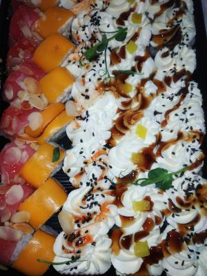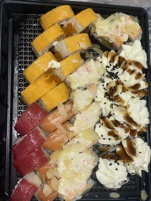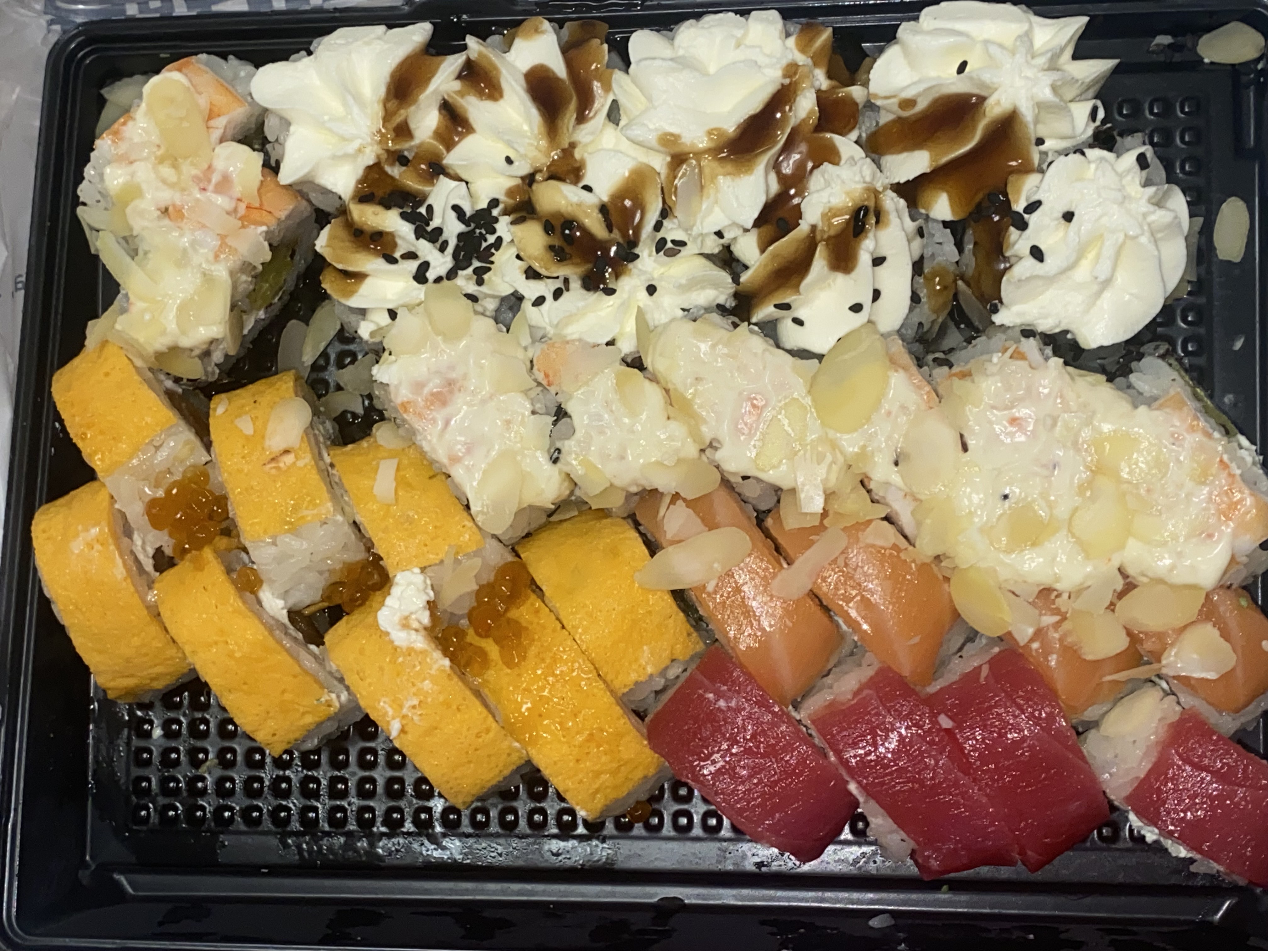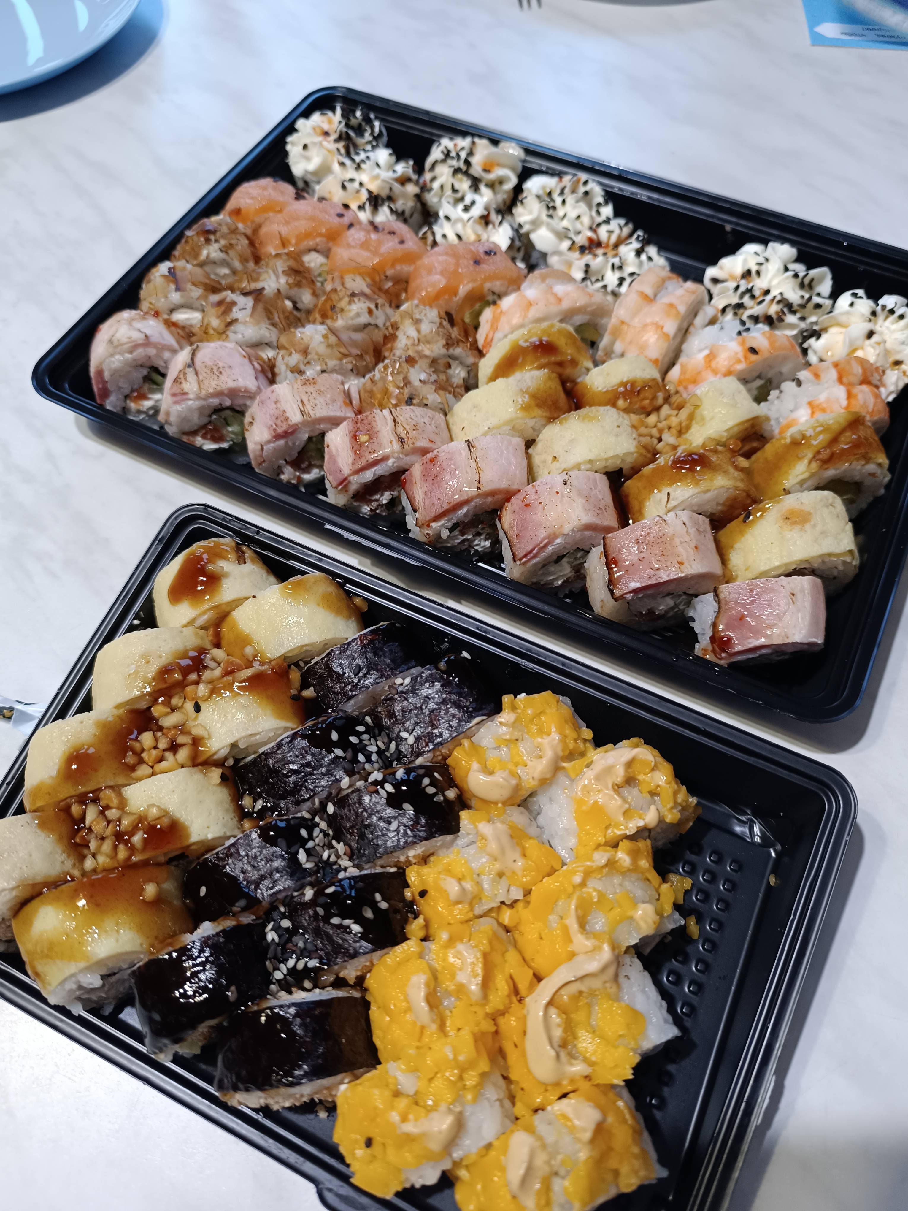 - Внимание! К предзаказу на 31.12 доступны: сет "Новогодний", "Дымный", "Мамины радости", "Макеба", "Ясахи", "Филадельфия", "Каприз", "Игра в кальмара", "Можно всё!", "Мама босс", "Палитра вкуса", "Муж купил", "Биг босс", "Мафия", "Манга", роллы Урамаки, все напитки и гарниры