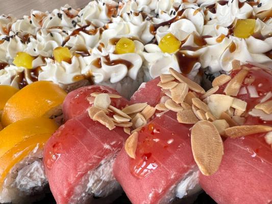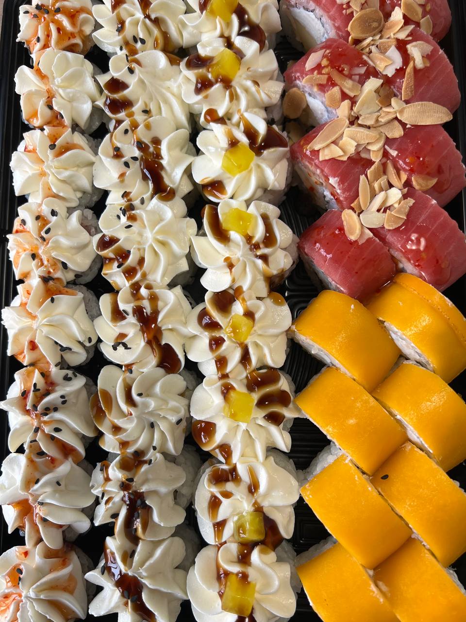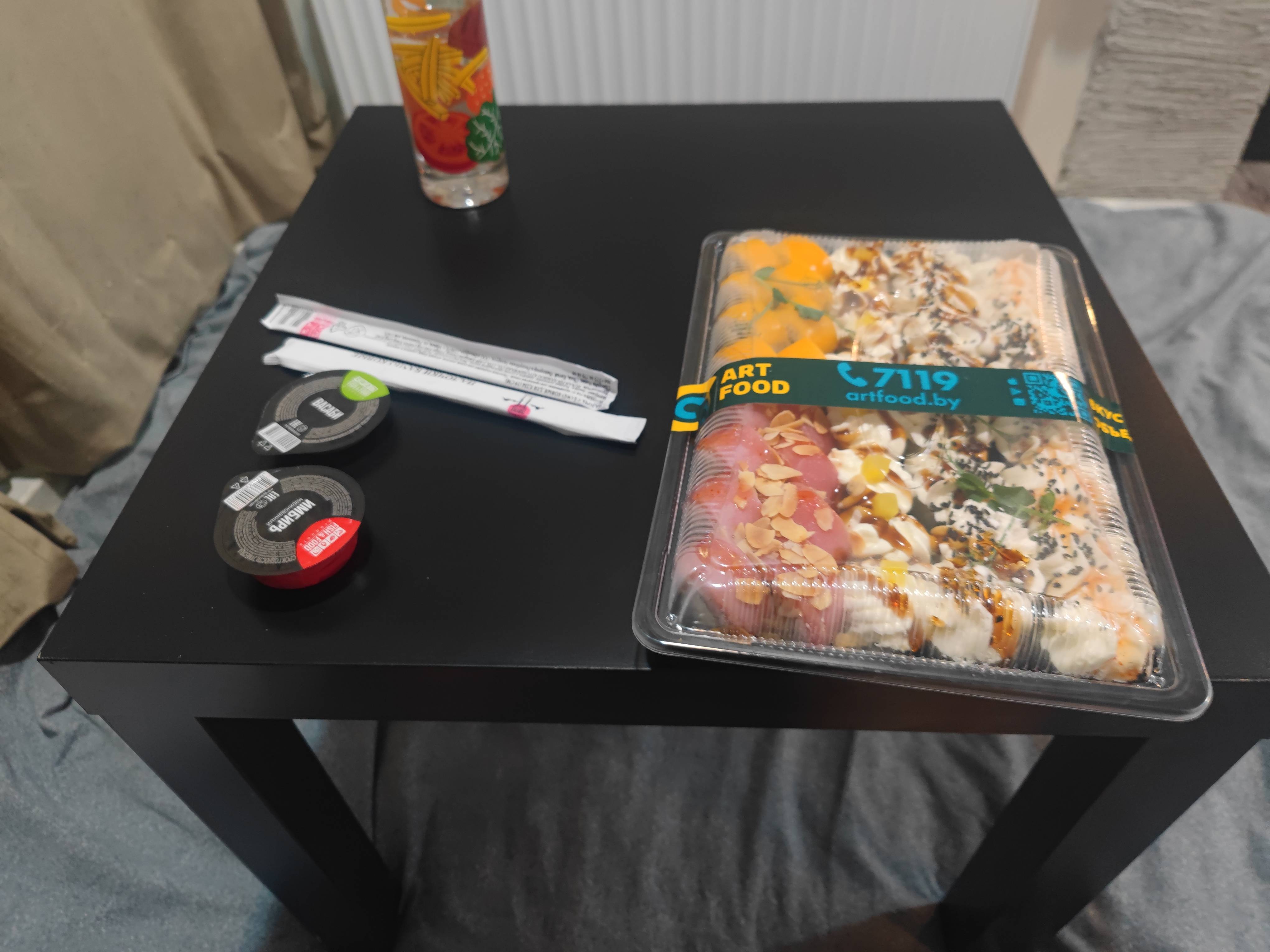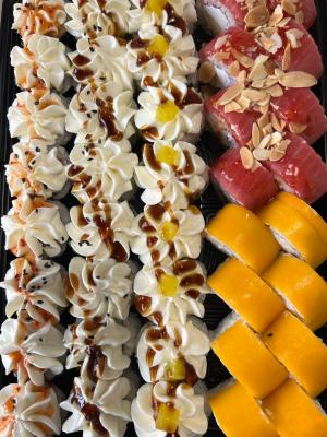 - Внимание! К предзаказу на 31.12 доступны: сет "Новогодний", "Дымный", "Мамины радости", "Макеба", "Ясахи", "Филадельфия", "Каприз", "Игра в кальмара", "Можно всё!", "Мама босс", "Палитра вкуса", "Муж купил", "Биг босс", "Мафия", "Манга", роллы Урамаки, все напитки и гарниры