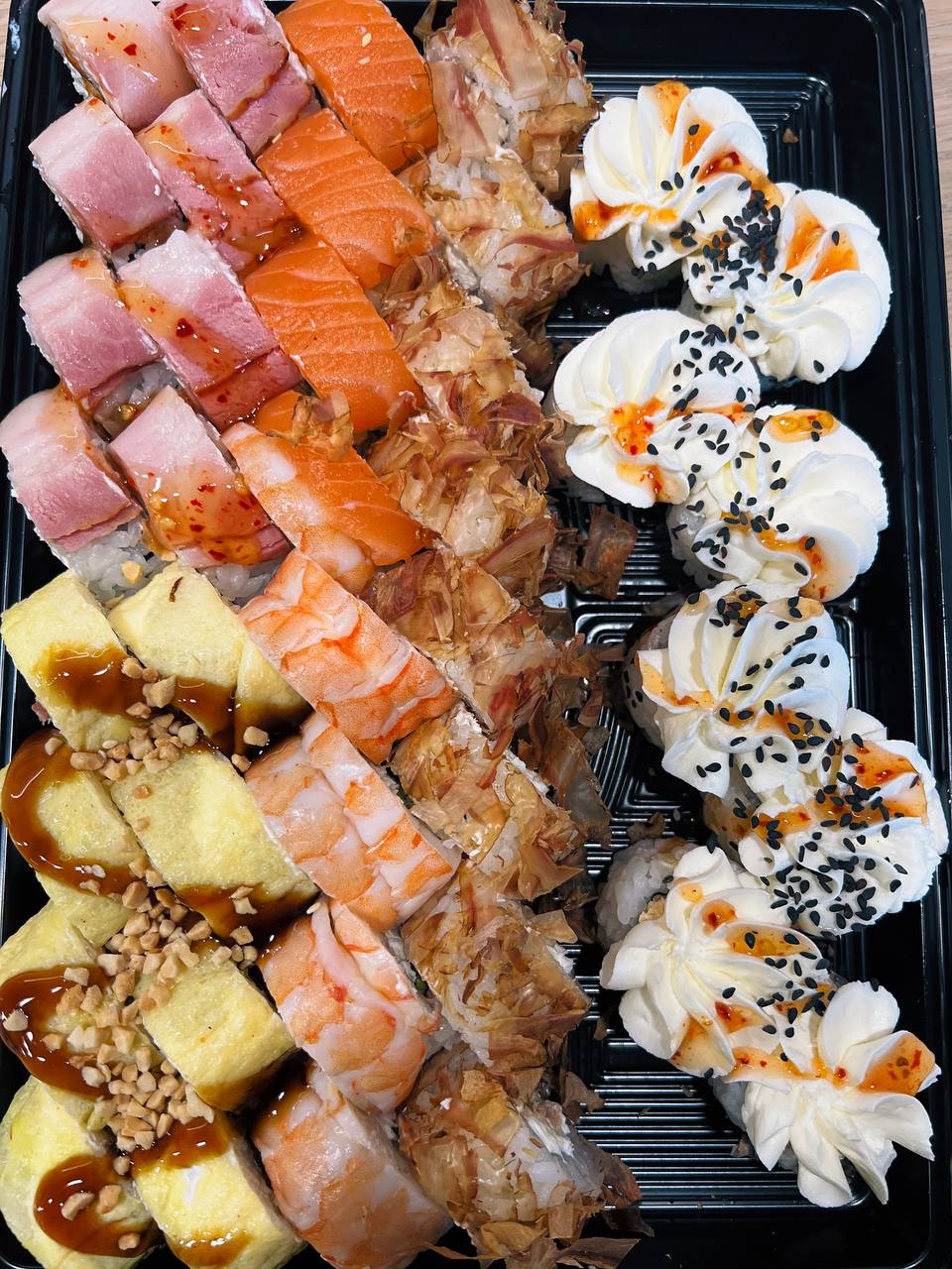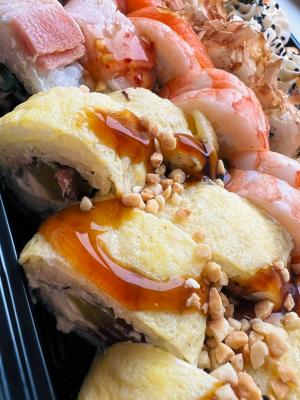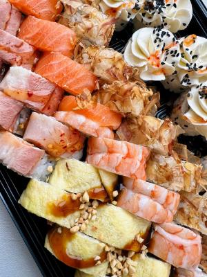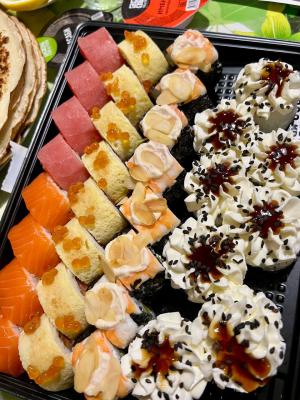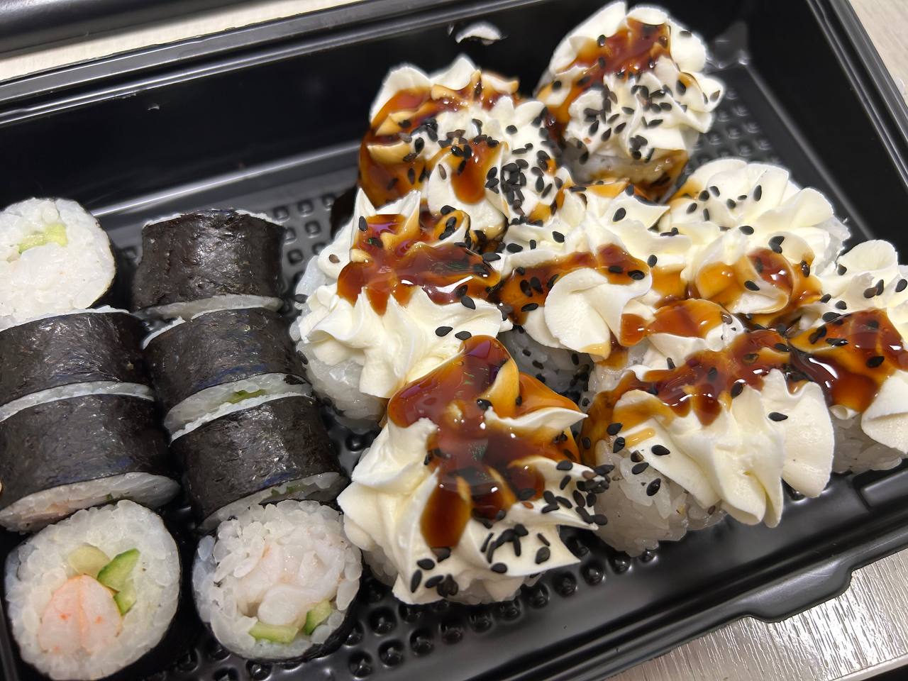 - Открыт предзаказ на 14 февраля! Доступные сеты: "Флирт", "Мамины радости", "Ясахи", "Филадельфия", "Каприз", "Можно всё!", "Палитра вкуса", "Муж купил", "Биг босс", "Мафия", "Манга", "Юджин". Роллы: урумаки.