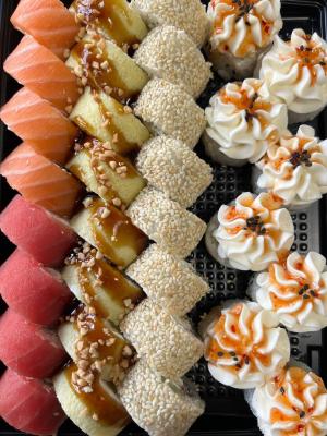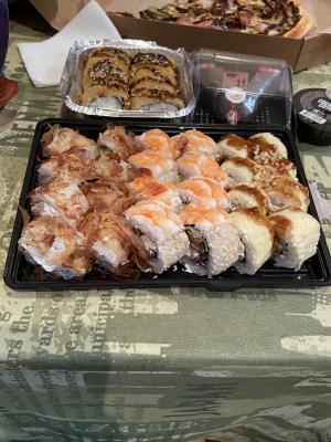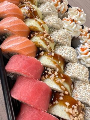 - Открыт предзаказ на 14 февраля! Доступные сеты: "Флирт", "Мамины радости", "Ясахи", "Филадельфия", "Каприз", "Можно всё!", "Палитра вкуса", "Муж купил", "Биг босс", "Мафия", "Манга", "Юджин". Роллы: урумаки.