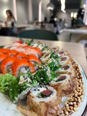 - Открыт предзаказ на 14 февраля! Доступные сеты: "Флирт", "Мамины радости", "Ясахи", "Филадельфия", "Каприз", "Можно всё!", "Палитра вкуса", "Муж купил", "Биг босс", "Мафия", "Манга", "Юджин". Роллы: урумаки.