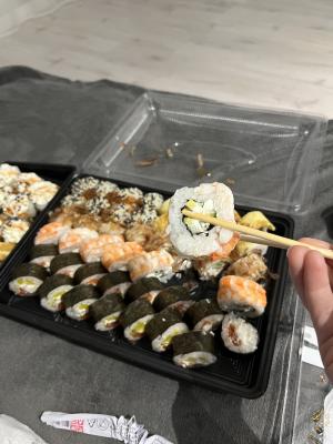 - Открыт предзаказ на 14 февраля! Доступные сеты: "Флирт", "Мамины радости", "Ясахи", "Филадельфия", "Каприз", "Можно всё!", "Палитра вкуса", "Муж купил", "Биг босс", "Мафия", "Манга", "Юджин". Роллы: урумаки.