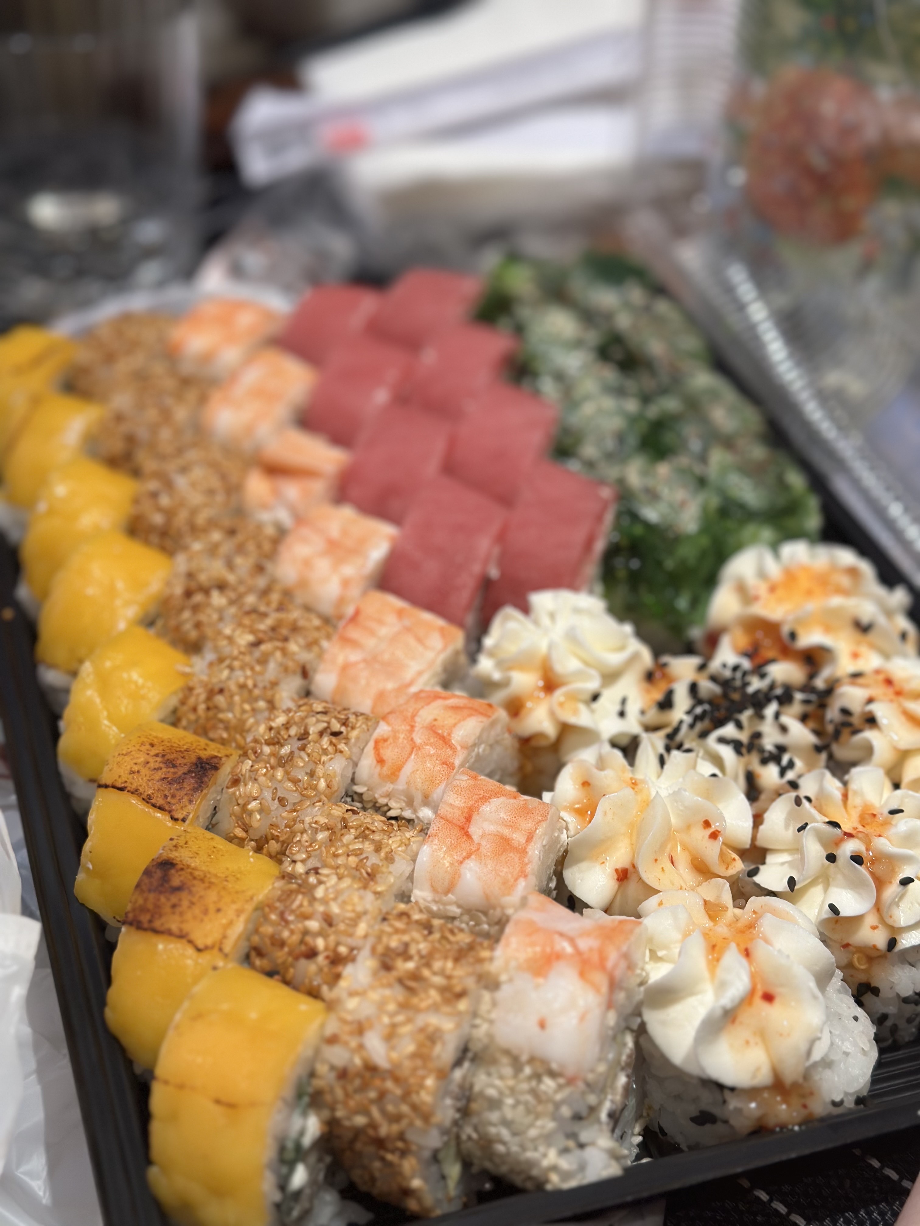 - Открыт предзаказ на 14 февраля! Доступные сеты: "Флирт", "Мамины радости", "Ясахи", "Филадельфия", "Каприз", "Можно всё!", "Палитра вкуса", "Муж купил", "Биг босс", "Мафия", "Манга", "Юджин". Роллы: урумаки.