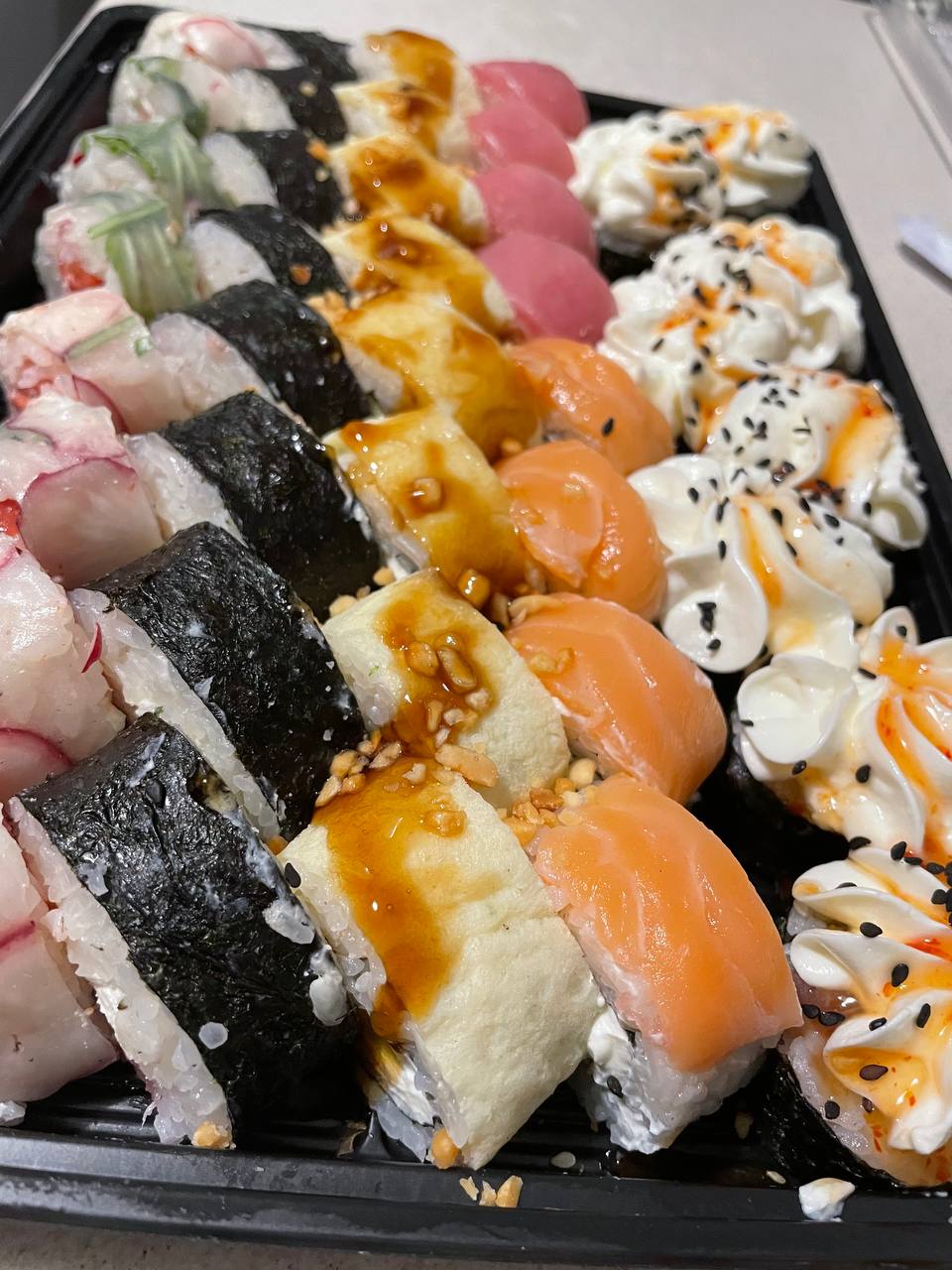 - Внимание! К предзаказу на 31.12 доступны: сет "Новогодний", "Мамины радости", "Макеба", "Ясахи", "Филадельфия", "Каприз", "Игра в кальмара", "Можно всё!", "Мама босс", "Палитра вкуса", "Муж купил", "Биг босс", "Мафия", "Манга", роллы Урамаки, все напитки и гарниры