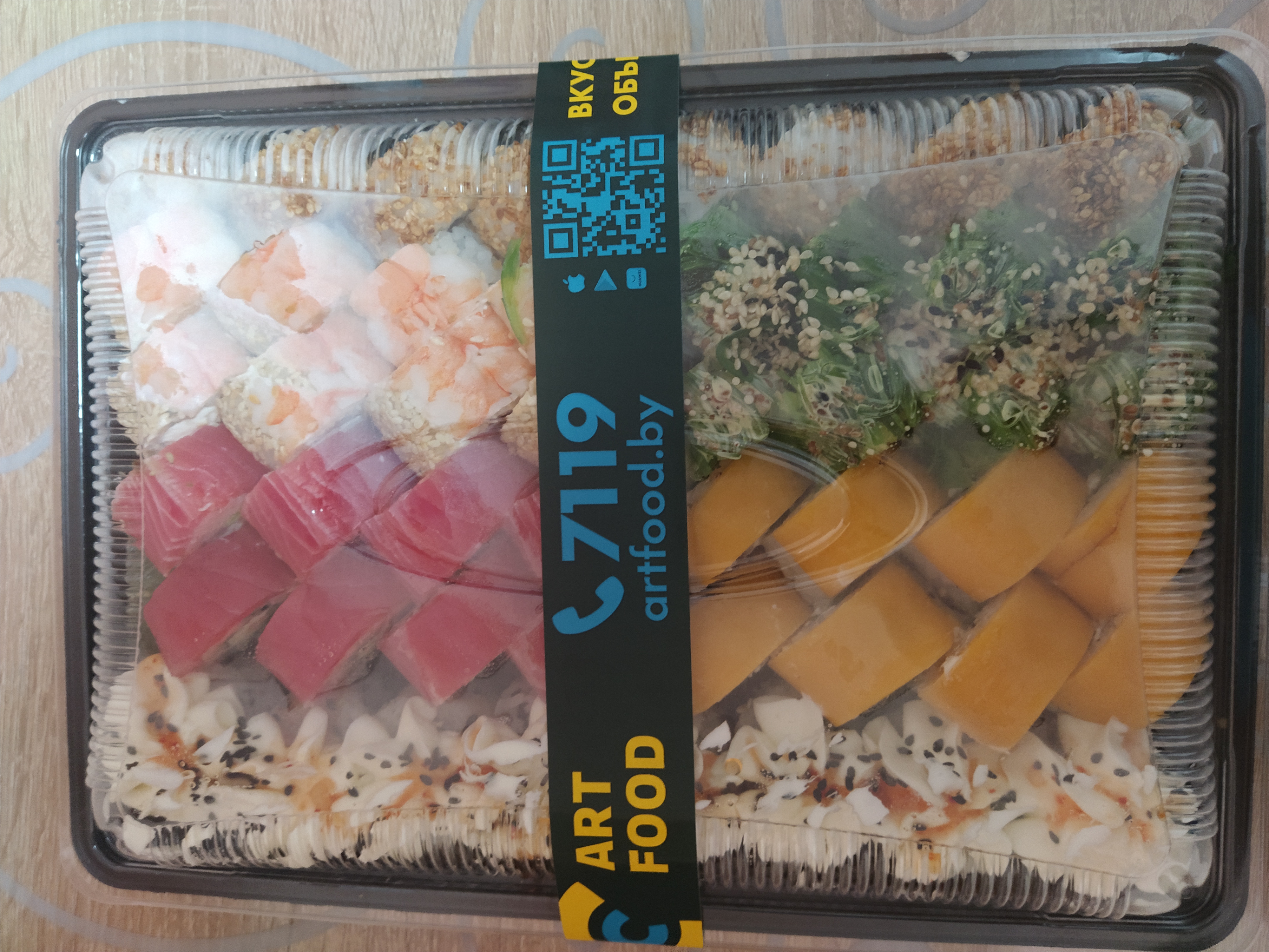 - Промокод дает право на скидку до 60% на суши-сеты от "ART FOOD"
