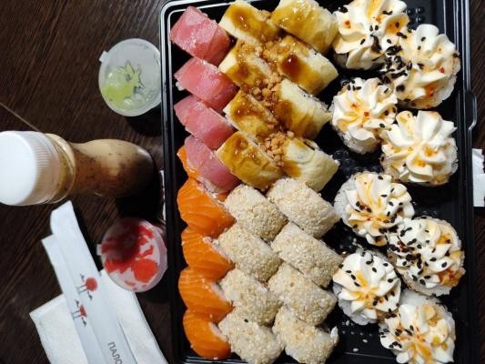- Внимание! К предзаказу на 31.12 доступны: сет "Новогодний", "Мамины радости", "Макеба", "Ясахи", "Филадельфия", "Каприз", "Игра в кальмара", "Можно всё!", "Мама босс", "Палитра вкуса", "Муж купил", "Биг босс", "Мафия", "Манга", роллы Урамаки, все напитки и гарниры