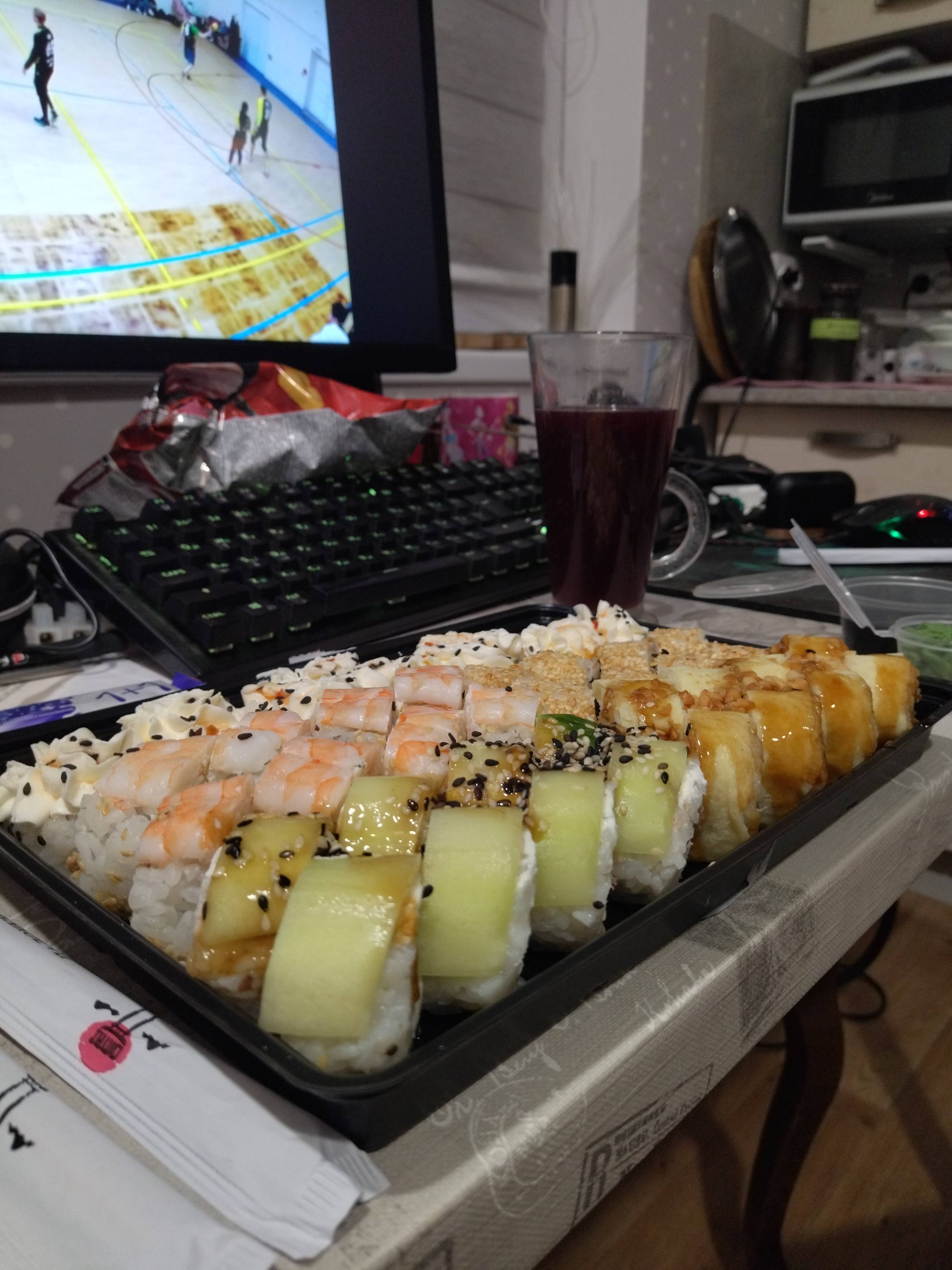 - Внимание! К предзаказу на 31.12 доступны: сет "Новогодний", "Мамины радости", "Макеба", "Ясахи", "Филадельфия", "Каприз", "Игра в кальмара", "Можно всё!", "Мама босс", "Палитра вкуса", "Муж купил", "Биг босс", "Мафия", "Манга", роллы Урамаки, все напитки и гарниры