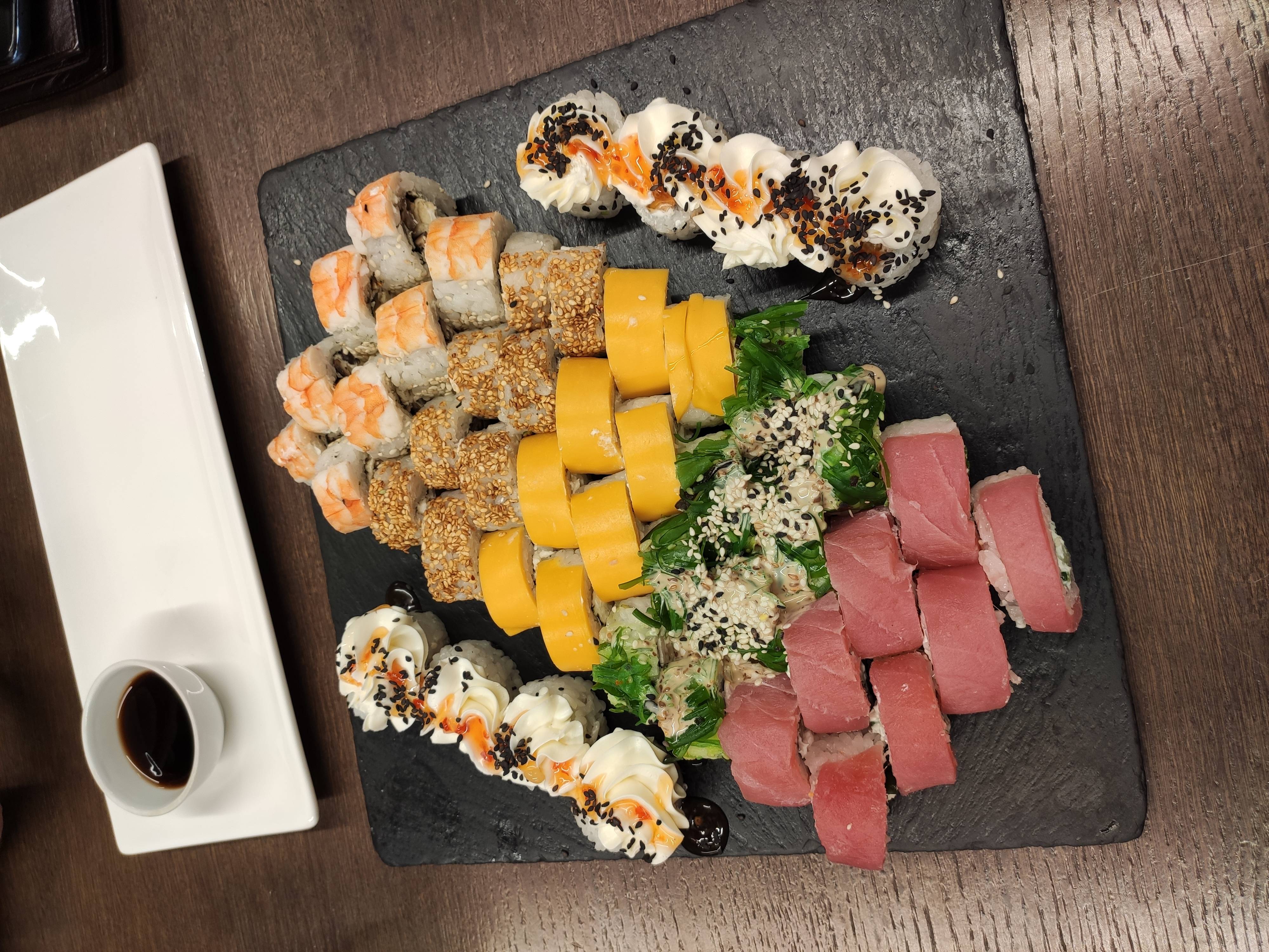 - Внимание! К предзаказу на 31.12 доступны: сет "Новогодний", "Мамины радости", "Макеба", "Ясахи", "Филадельфия", "Каприз", "Игра в кальмара", "Можно всё!", "Мама босс", "Палитра вкуса", "Муж купил", "Биг босс", "Мафия", "Манга", роллы Урамаки, все напитки и гарниры