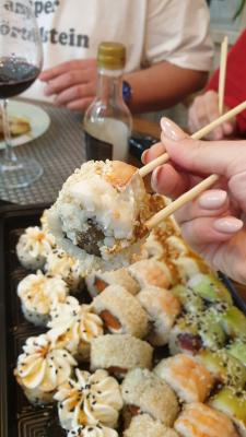 - На 1 суши-сет прилагается не более 4 комплектов палочек