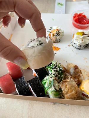- На 1 суши-сет прилагается не более 4 комплектов палочек