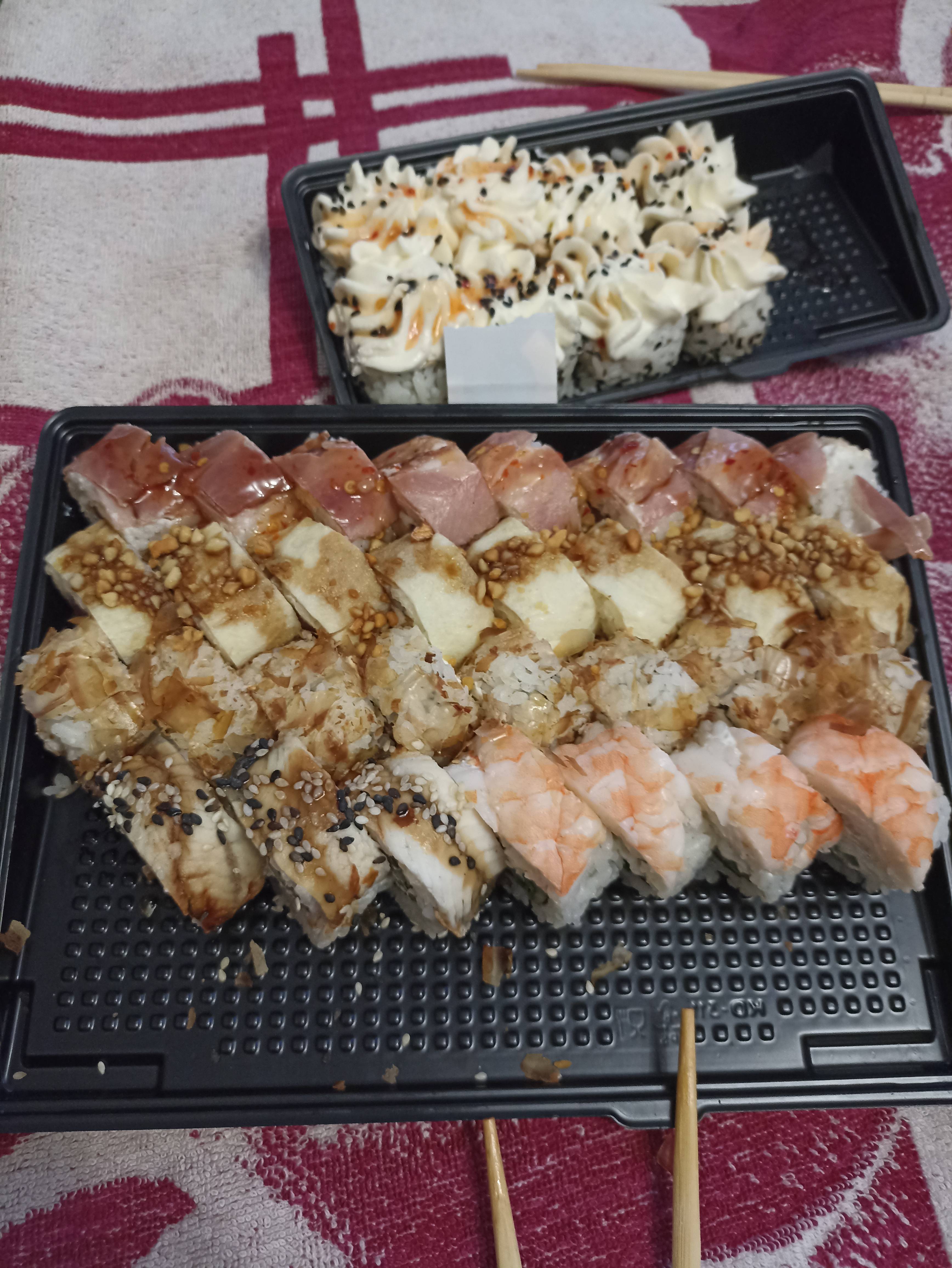 - Внимание! К предзаказу на 31.12 доступны: сет "Новогодний", "Мамины радости", "Макеба", "Ясахи", "Филадельфия", "Каприз", "Игра в кальмара", "Можно всё!", "Мама босс", "Палитра вкуса", "Муж купил", "Биг босс", "Мафия", "Манга", роллы Урамаки, все напитки и гарниры