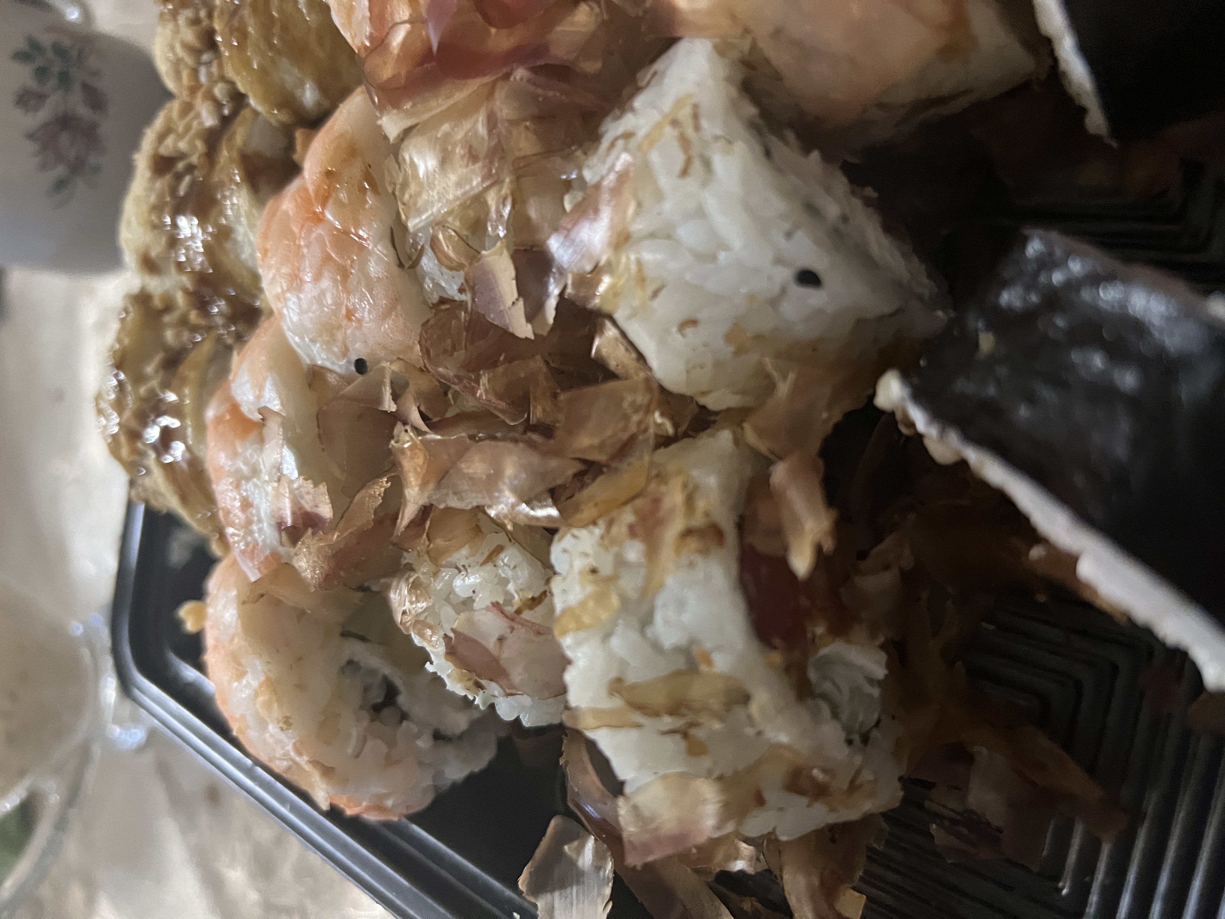 обычно они со всех сторон усыпаны сушеной рыбой,а тут просто сверху посыпали
