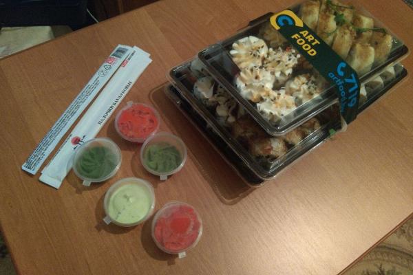 Заказывали вчера сыну на день рождения. Все привезли точно ко времени указанному в заказе. Роллы свежайшие и очень вкусные, приехали с Рафиева. Art food спасибо.