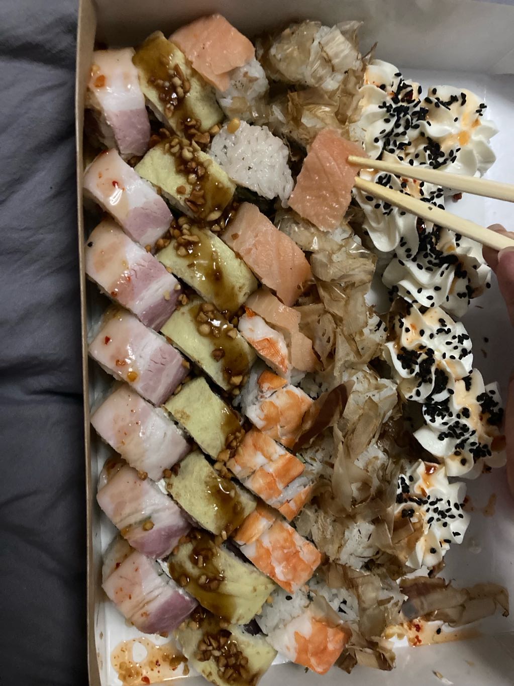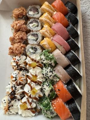 - На 1 суши-сет прилагается не более 4 комплектов палочек